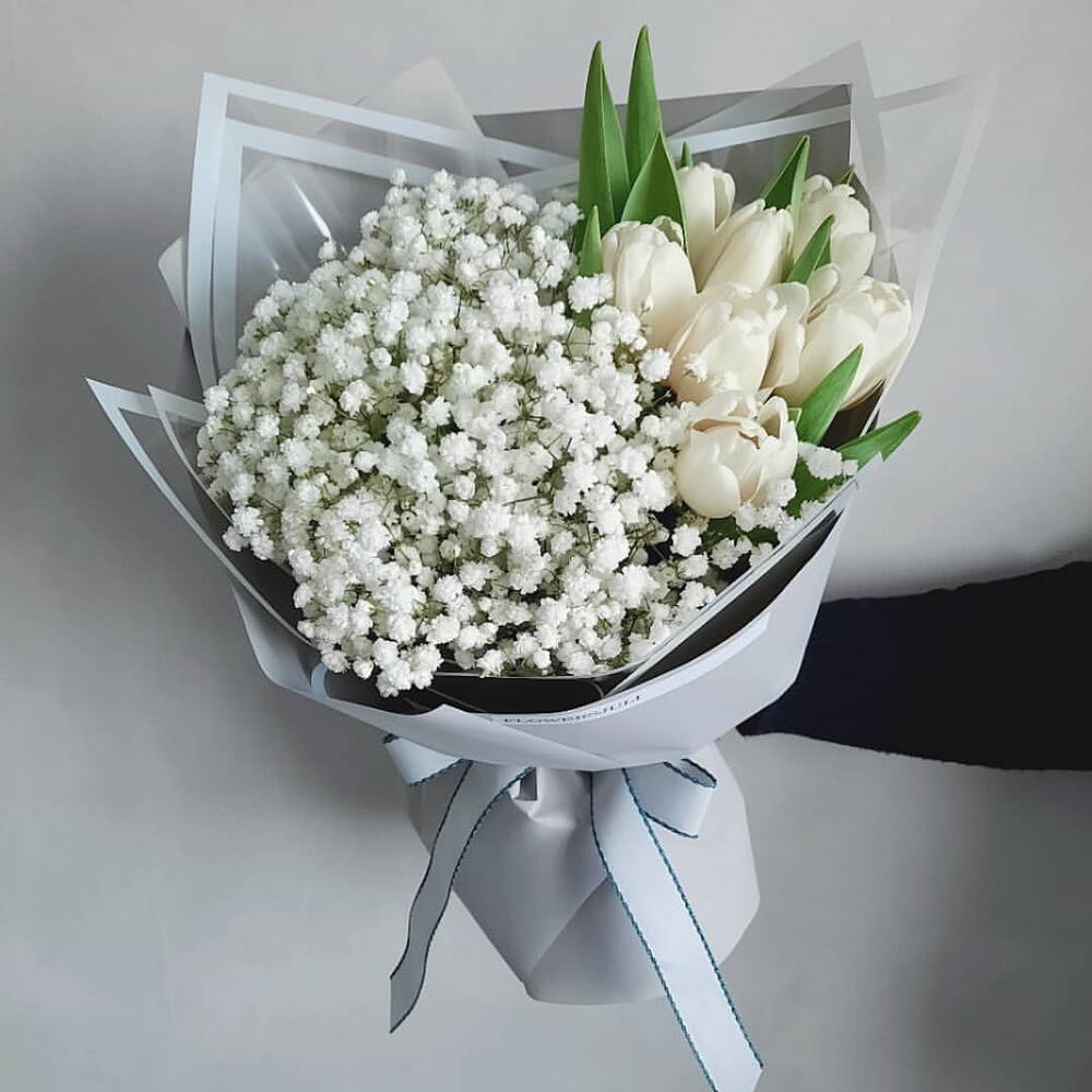 Gypsophila - 10 ud. white tulip - 10 ud. bonito papel de regalo - 5 ud.