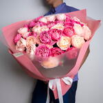 Букет понравился, но сервис не оправдал ожидания - заказал на утро с 8.30 до 9.00. На момент 8.40 никакого обновления статуса заказа в приложении где был сделан заказ - пришлось искать магазин по названию в google и звонить им напрямую. В итоге заказ был доставлен в 9.10, и потребовал доп усилий чтобы все привезли. В следующий раз буду заказывать напрямую, а не через приложение так как служба поддержки работает по московскому времени.