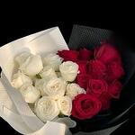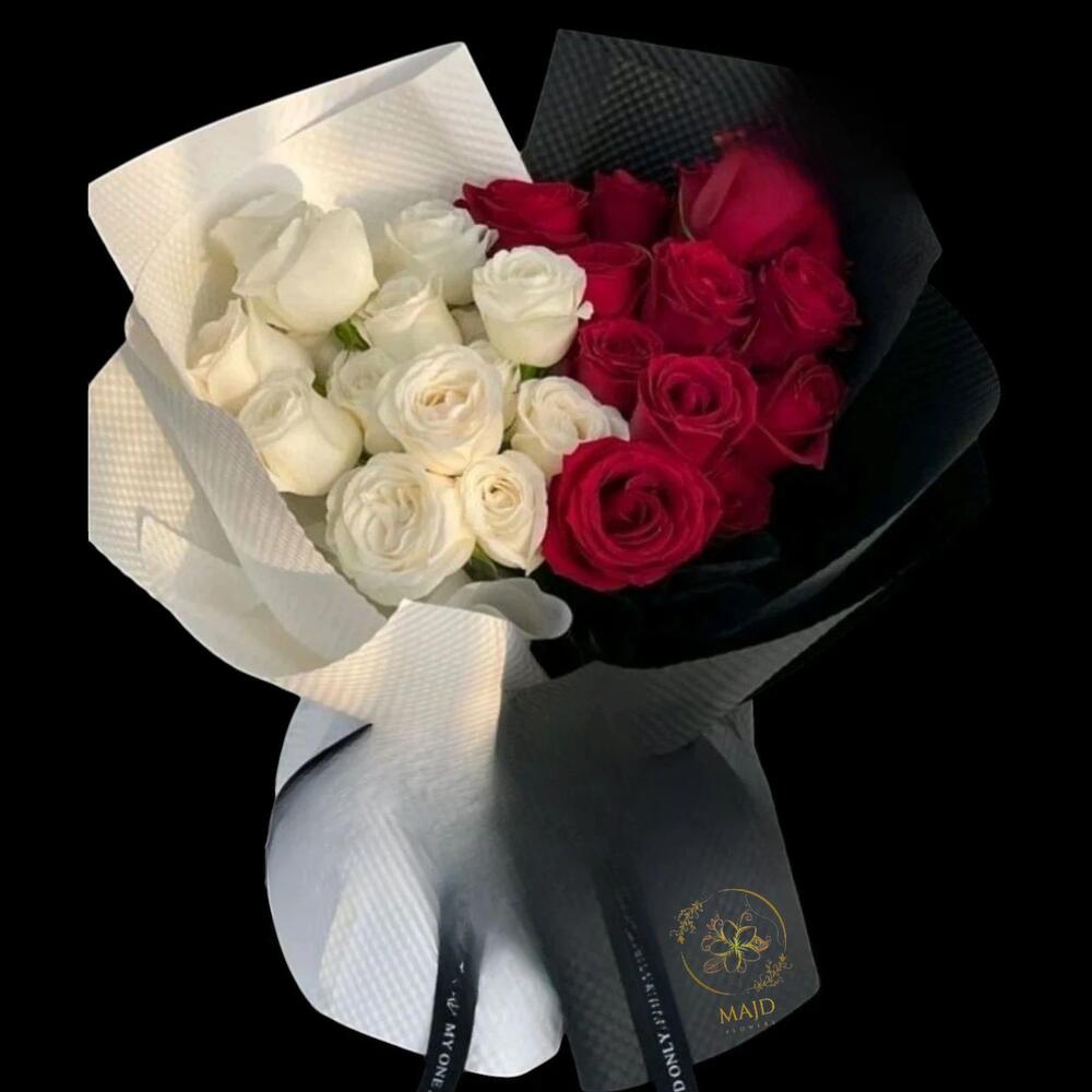 Ramo combinado de rosas frescas blancas y rojas