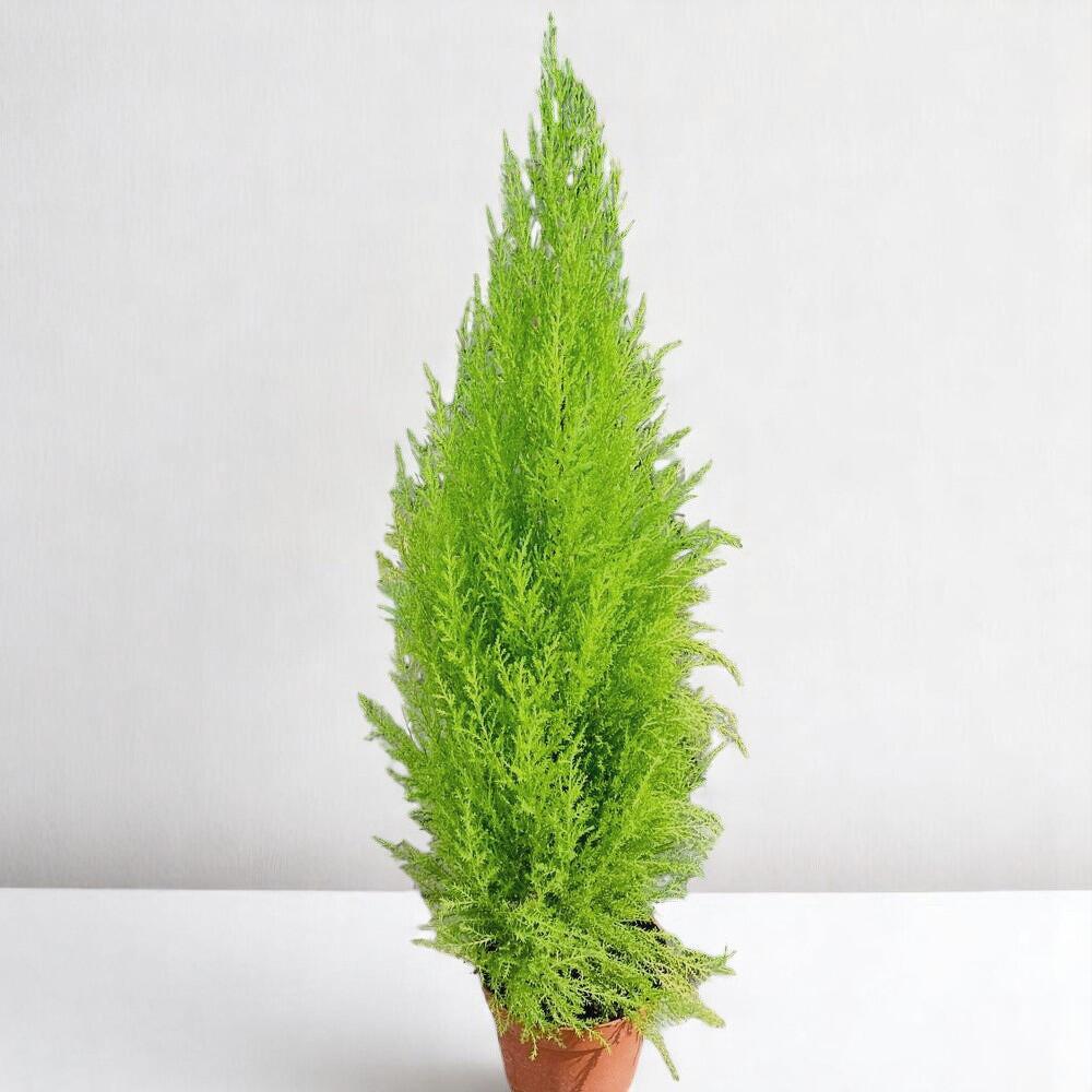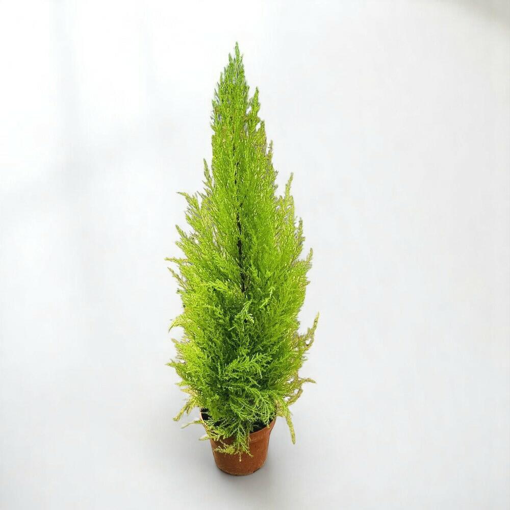 ¡Añade un toque refrescante de vegetación con el Ciprés de limón! Con su follaje de un verde chartreuse brillante y su forma cónica natural, esta planta es un acento elegante para interiores modernos o decoración festiva. Frota suavemente las agujas para liberar un aroma cítrico a limón que realza cualquier espacio. Su silueta simétrica y siempre verde la convierte en una favorita para exhibiciones navideñas o como un elegante topiario durante todo el año. El Ciprés de limón es elegante y fácil de mantener — ideal para amantes de las plantas de todos los niveles de experiencia.