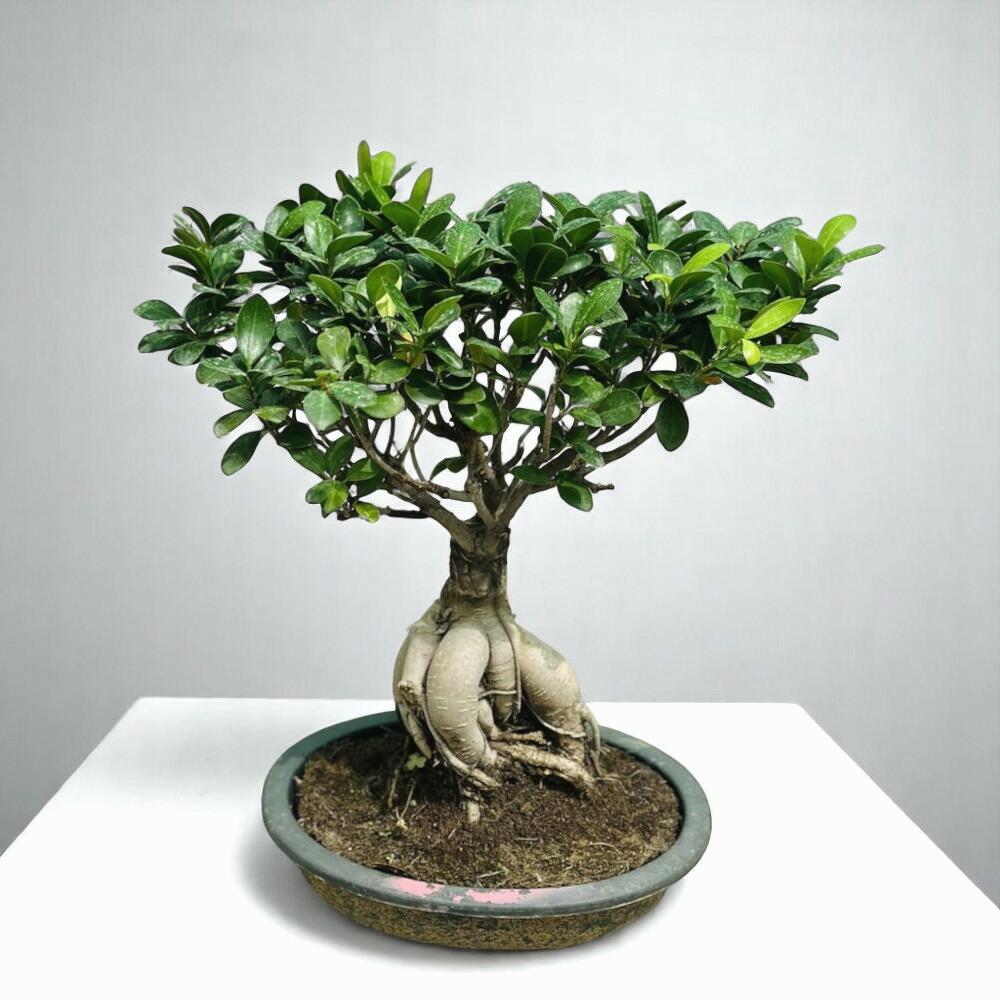 Ficus Ginseng Bonsai – Aporta un toque de tranquilidad a tu espacio con el Ficus Ginseng Bonsai. Conocido por sus raíces bulbosas únicas y sus hojas verdes y brillantes, este bonsai es un símbolo de resiliencia y prosperidad. Perfecto tanto para principiantes como para aficionados experimentados, prospera con cuidados mínimos y añade un toque elegante a cualquier decoración. Ideal para escritorios, mesas o zonas de estar, el Ficus Ginseng Bonsai crea un ambiente sereno y realza tu espacio con su encanto atemporal.