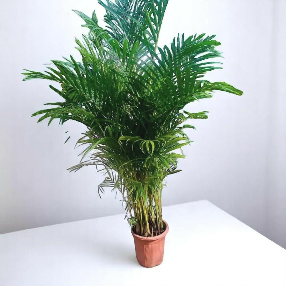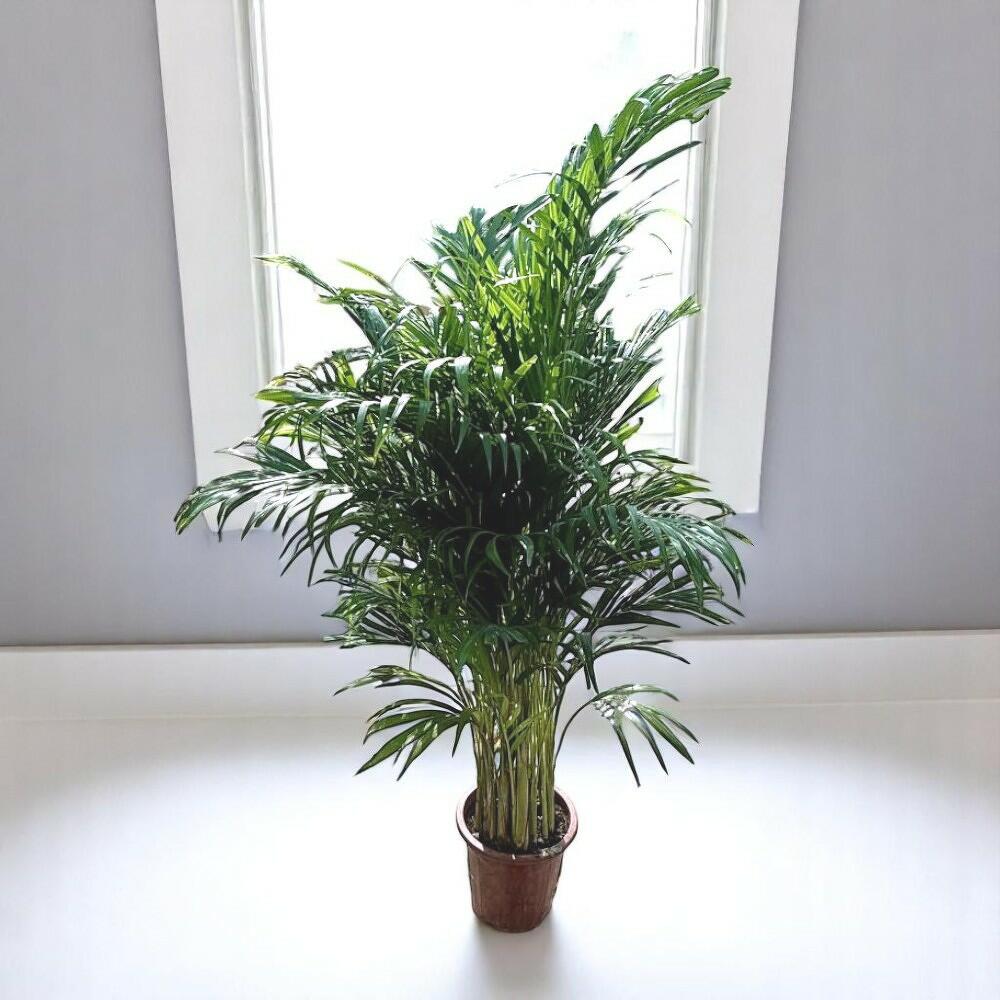 La palma areca, también conocida como Dypsis lutescens o palma de mariposa, es una planta de interior popular, reconocida por sus frondas exuberantes y plumosas que aportan un aire tropical a cualquier espacio. Esta palma, fácil de cuidar, prospera con luz brillante e indirecta y ayuda a purificar el aire, lo que la convierte en una excelente opción para hogares y oficinas. Con sus hojas gráciles y arqueadas y su vibrante color verde, la palma areca añade un toque de elegancia y belleza natural a tu decoración. Perfecta para aportar altura e interés visual a salones, patios o espacios de jardín.