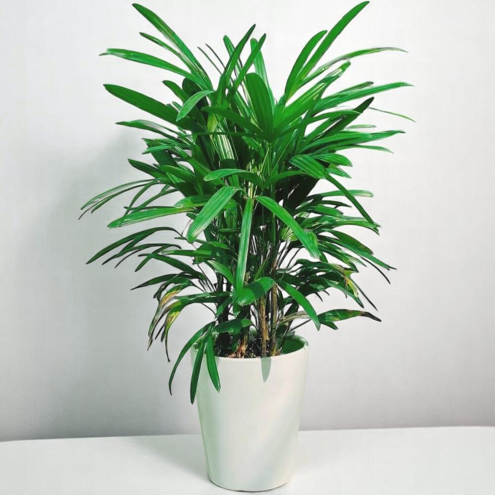 Rhaphis Excelsa Palm in White Pot