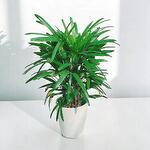 Graciosa, frondosa y refrescantemente tropical, la palma dama (Rhapis excelsa) es una favorita atemporal para interiores. Su follaje en forma de abanico, de un verde intenso, crece en elegantes racimos, creando una silueta sofisticada que realza tanto interiores modernos como clásicos. Perfecta para hogares, oficinas o patios sombreados, esta planta no solo es decorativa, sino también un potente purificador de aire. Su lento crecimiento y su adaptabilidad a la poca luz la convierten en una incorporación de bajo mantenimiento ideal para tu colección de plantas. Ya sea colocada en el suelo o sobre una mesa, esta palma aporta vegetación y calma sin esfuerzo.