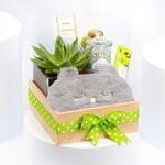 Desata la experiencia de mimo definitiva con nuestra cesta de regalo seleccionada. En su interior, descubre una vela perfumada de fragancia exquisita que crea un ambiente relajante, acompañada de una Echeveria de bajo mantenimiento para añadir un toque de naturaleza a cualquier espacio. Mima tu piel con una crema de manos intensamente hidratante y date el gusto con una mascarilla facial con aroma a kiwi refrescante que deja la piel revitalizada y renovada. Por último, asegura un sueño profundo y reparador con un antifaz relajante que bloquea la luz molesta. Esta selección cuidadosamente escogida es el regalo perfecto para cualquier ocasión o un capricho de cuidado personal solo para ti.