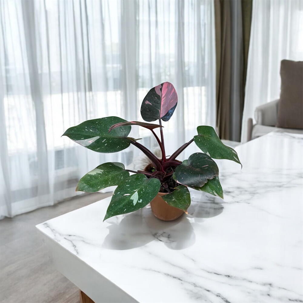 Philodendron Pink Princess es una especie rara e impresionante de las selvas tropicales de Sudamérica. Es un aroide trepador con hojas oscuras y salpicaduras variegadas de color rosa claro. La planta se merece su nombre. Realmente parece un cuento de hadas hecho realidad.