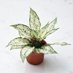 Aglaonema Spring Snow es una planta de interior fácil de cuidar y de bajo mantenimiento que se desarrolla mejor si se mantiene alejada de corrientes de aire o rejillas de ventilación. El follaje verde con centros blancos realmente llama la atención cuando se planta en una maceta de color brillante, y los 6 contenedores podrían usarse como centro de mesa o para alegrar un rincón de la habitación. Aglaonema Spring Snow es un tipo de planta purificadora de aire, conocida por eliminar el benceno y el formaldehído del aire dentro de su hogar. La belleza y la funcionalidad del Aglaonema Spring Snow van acompañadas de un cuidado sencillo.
