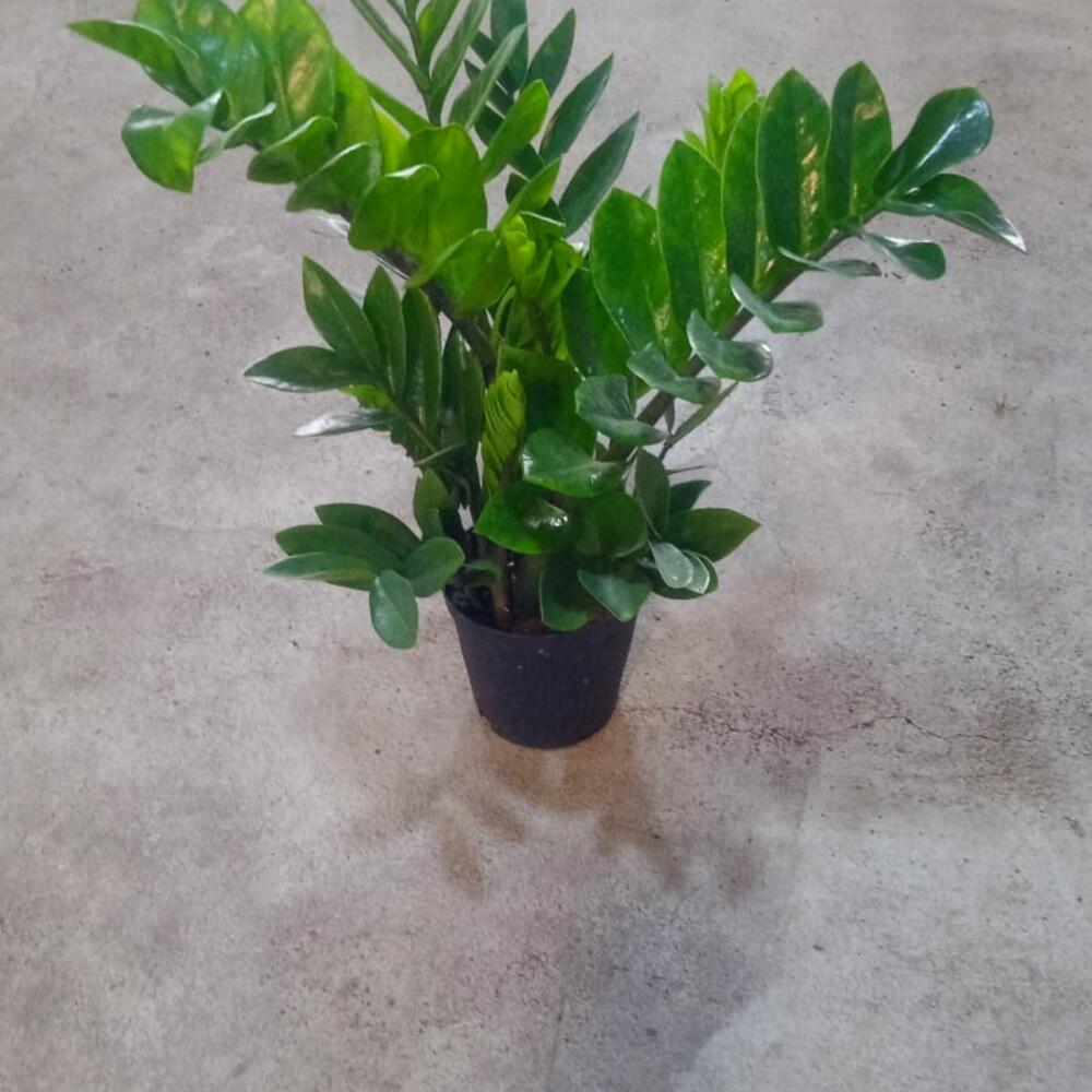 La planta en la imagen es una planta ZZ, científicamente conocida como Zamioculcas zamiifolia.