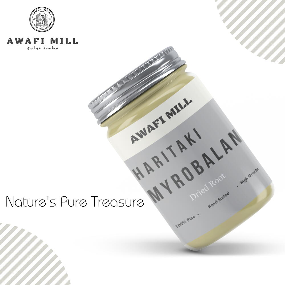 AWAFI MILL Haritaki amarillo | Nuez india - Botella de 100 gramos