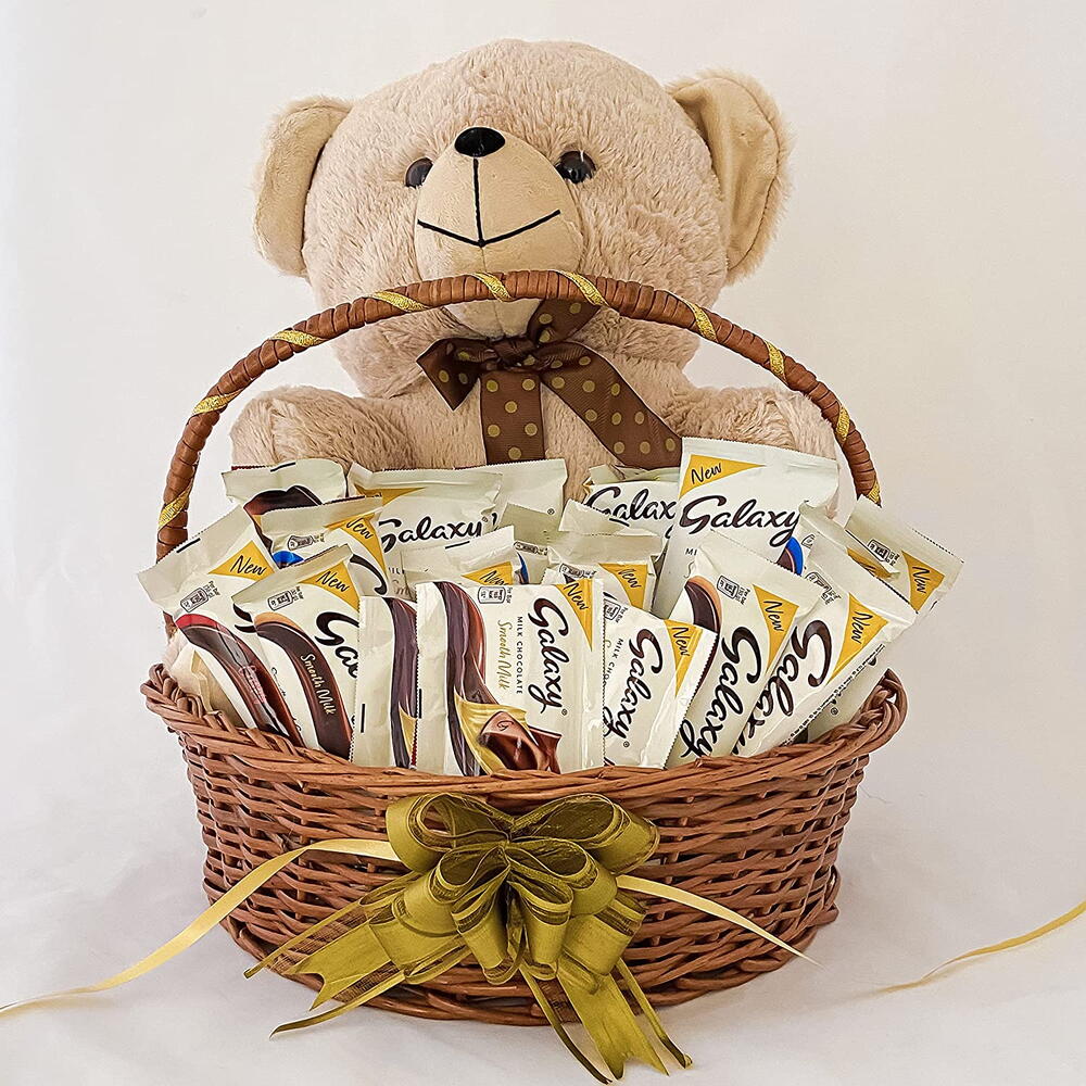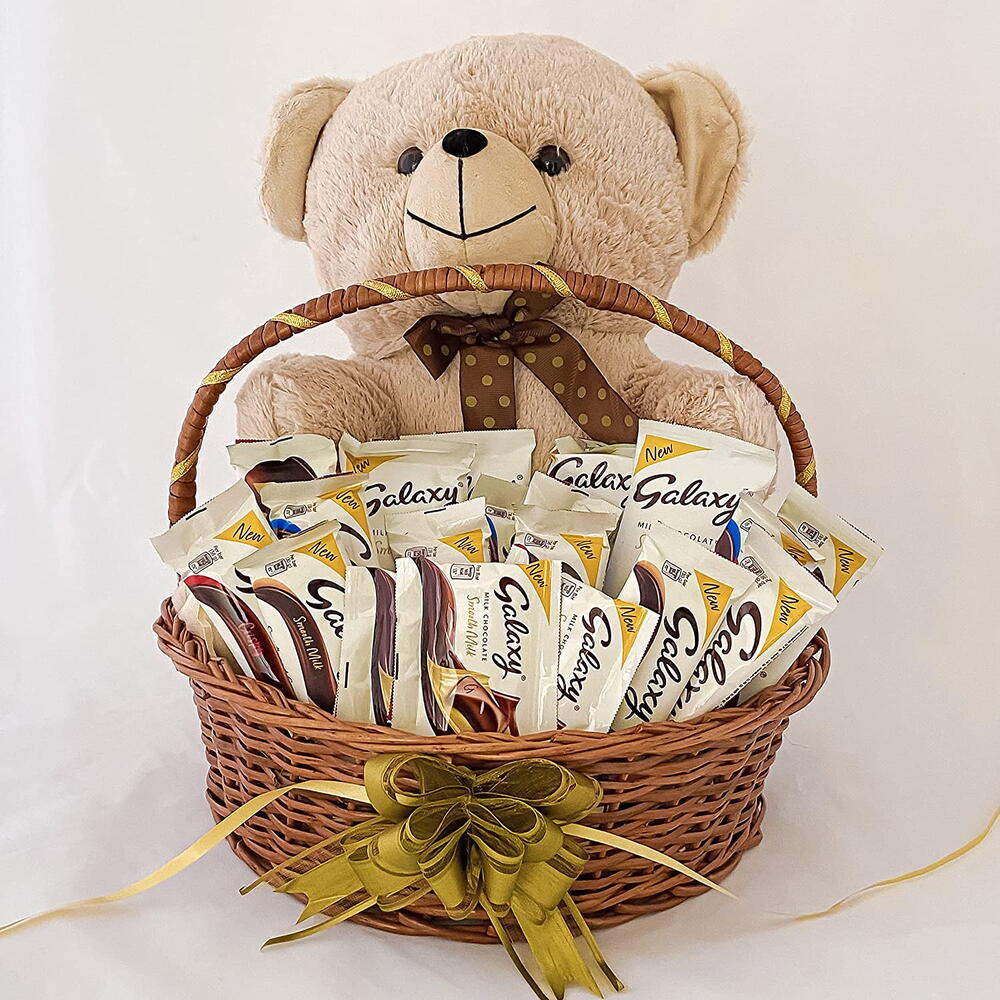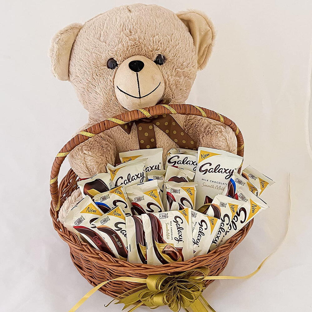 ¿Buscas el mejor regalo de cumpleaños para tu esposa en línea? Aquí tienes algunos artículos de regalo sobre cómo elegir el regalo perfecto para ella. Esta linda cesta de regalo incluye un elegante osito de peluche, chocolates Galaxy y una tarjeta de felicitación
