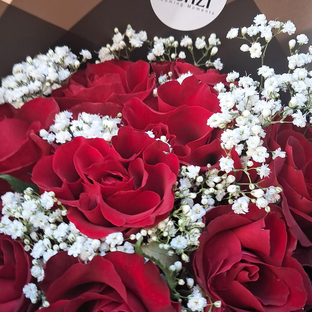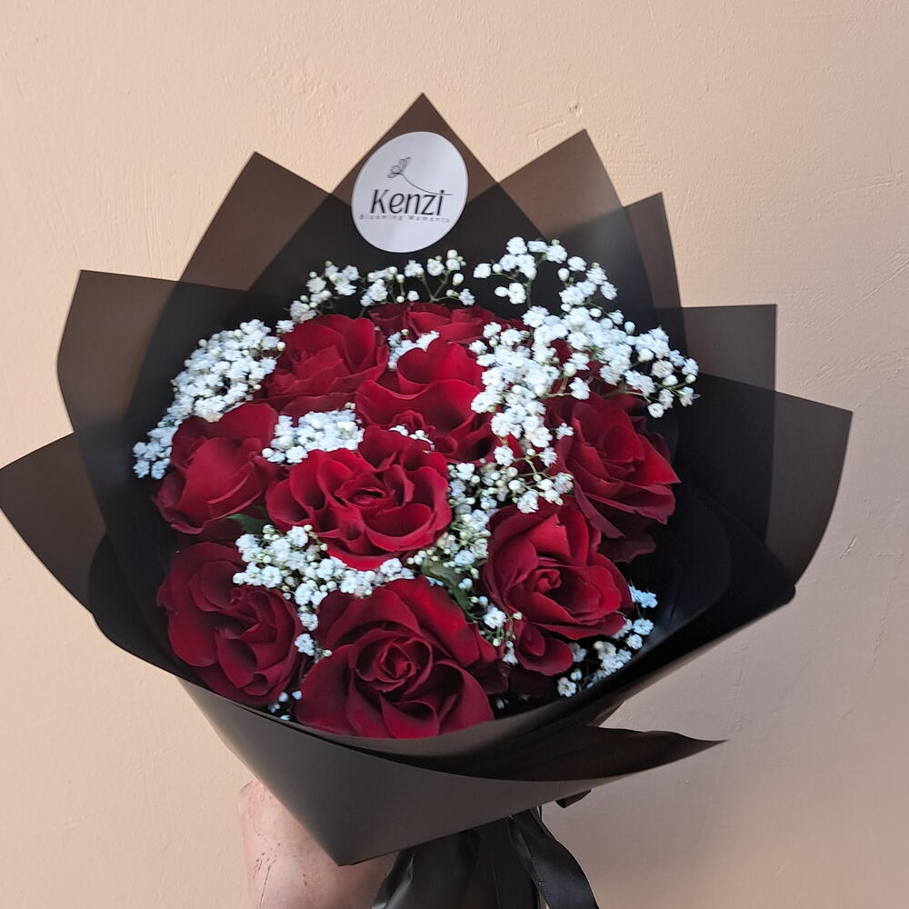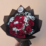 Red rose - 10 pcs Gypsophila - 2 pcs