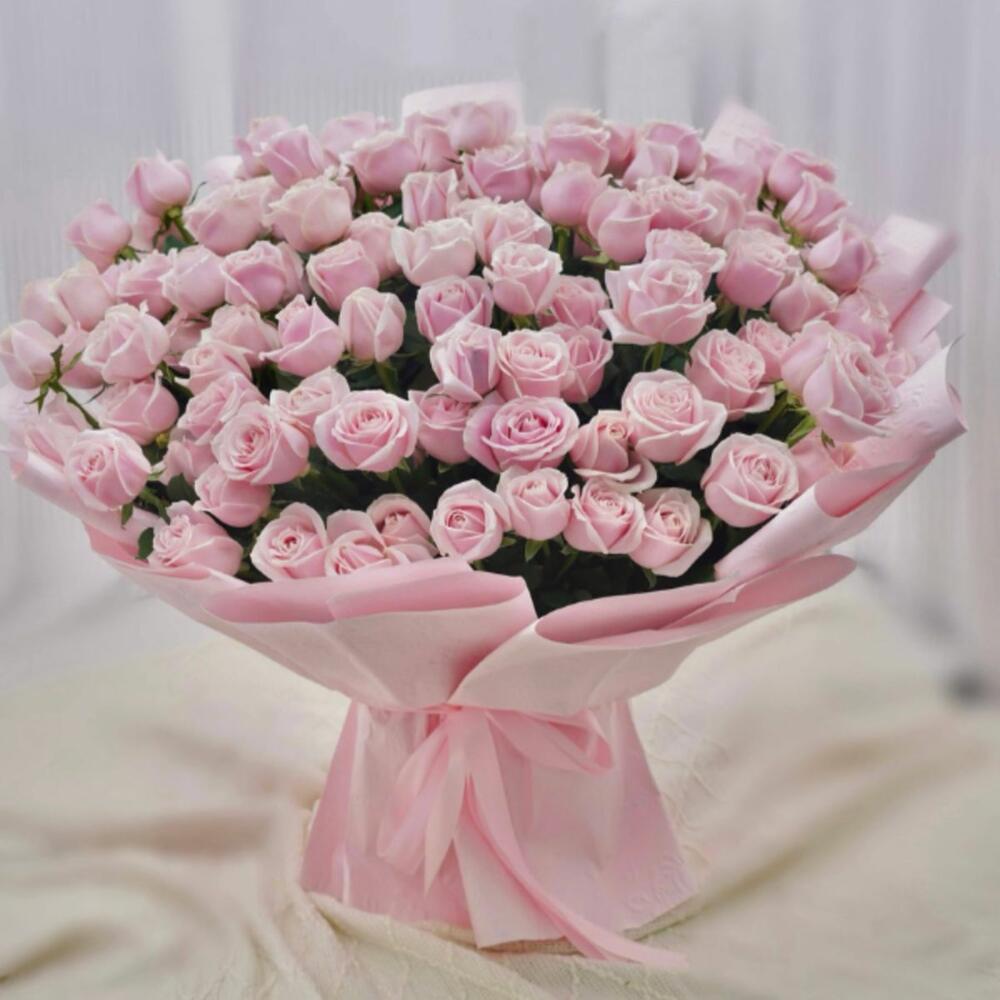 A stunning bouquet featuring 100 soft pink roses, elegantly wrapped in premium pink packaging for a luxurious and romantic presentation. Perfect for expressing love, admiration, or celebrating special occasions like birthdays, anniversaries, and Valentine’s Day. Ideal gift for her, girlfriend, wife, or anyone who deserves something truly special.