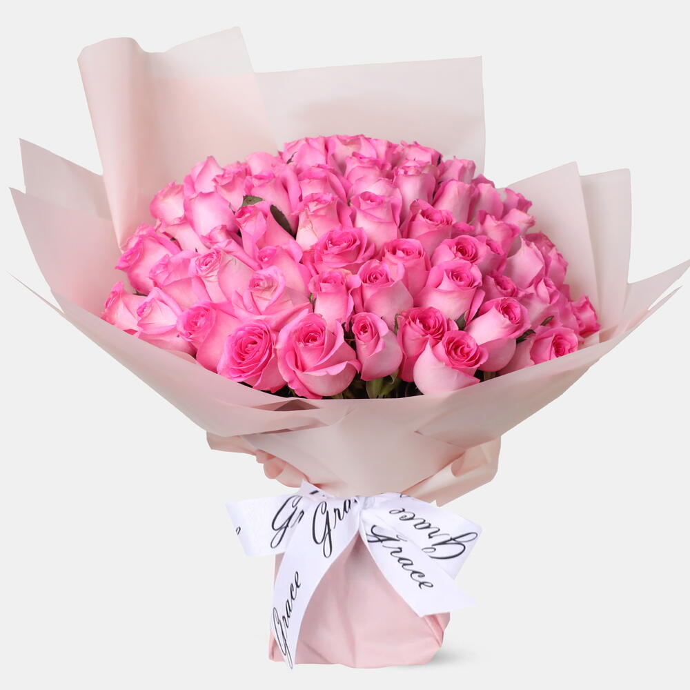 Indulge in the timeless elegance of our 100 Pink Roses Bouquet — a breathtaking arrangement that symbolizes grace, admiration, and love, perfect for making unforgettable moments truly special.