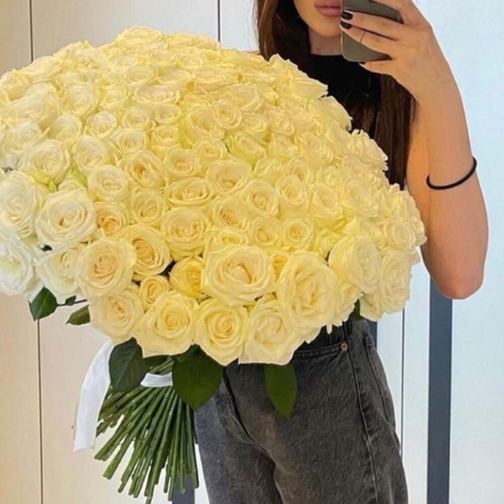 premium white roses - 100 pcs premium white ribbon - 1 pcs