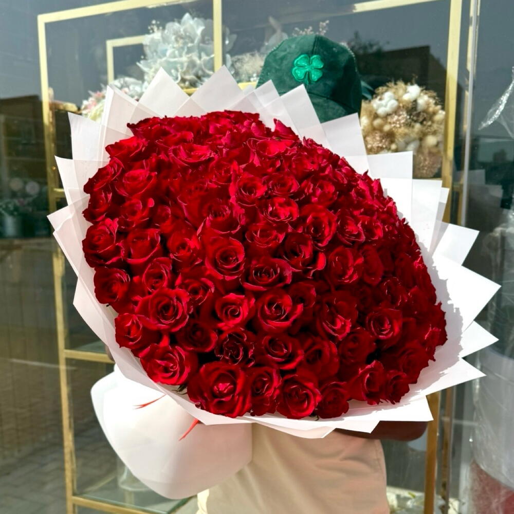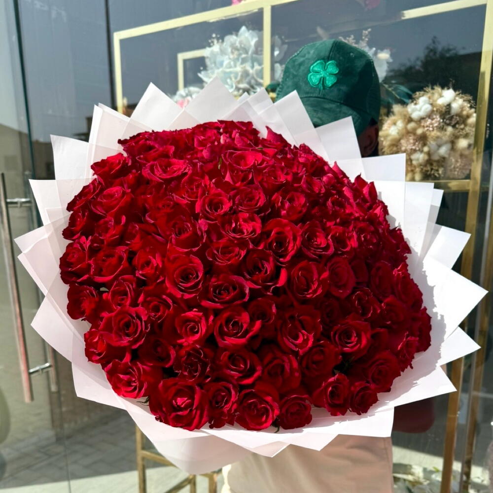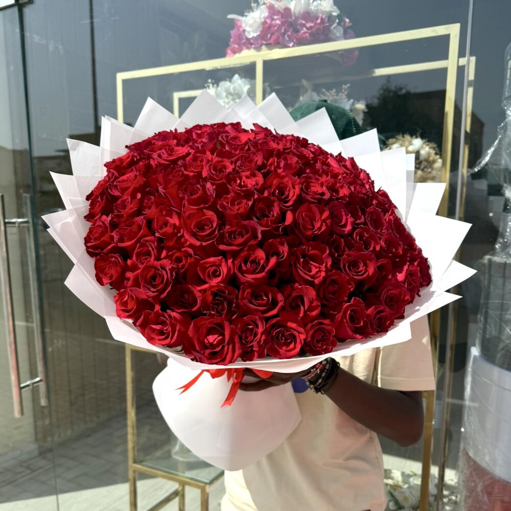 Immerse into the timeless allure of romance with our Mono Bouquet, lavishly adorned with 101 passionately red roses. Elegantly structured and meticulously arranged, these velvety roses will dispatch your deepest sentiments in an extraordinary display of affection. The sheer volume multiplies the grandeur, making it a perfect token of unending love. Suitable for expressing a grand declaration of love, anniversaries, proposals, or simply to display luxurious taste with a touch of majestic charm.