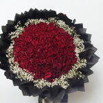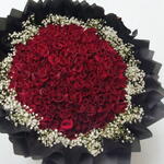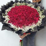 Dazzle your senses with this extravagant mono bouquet! Brimming with a hundred luxurious red roses, each one picked at the peak of perfection, this arrangement radiates allure and elegance. Tucked among the roses, youll find ten stems of textured jipso, adding depth and a whimsical touch to the design. Whether youre celebrating a milestone, expressing love, or simply making an ordinary day extraordinary, this lush bouquet is sure to enchant. Please note that flowers and colors could vary according to the season and availability.