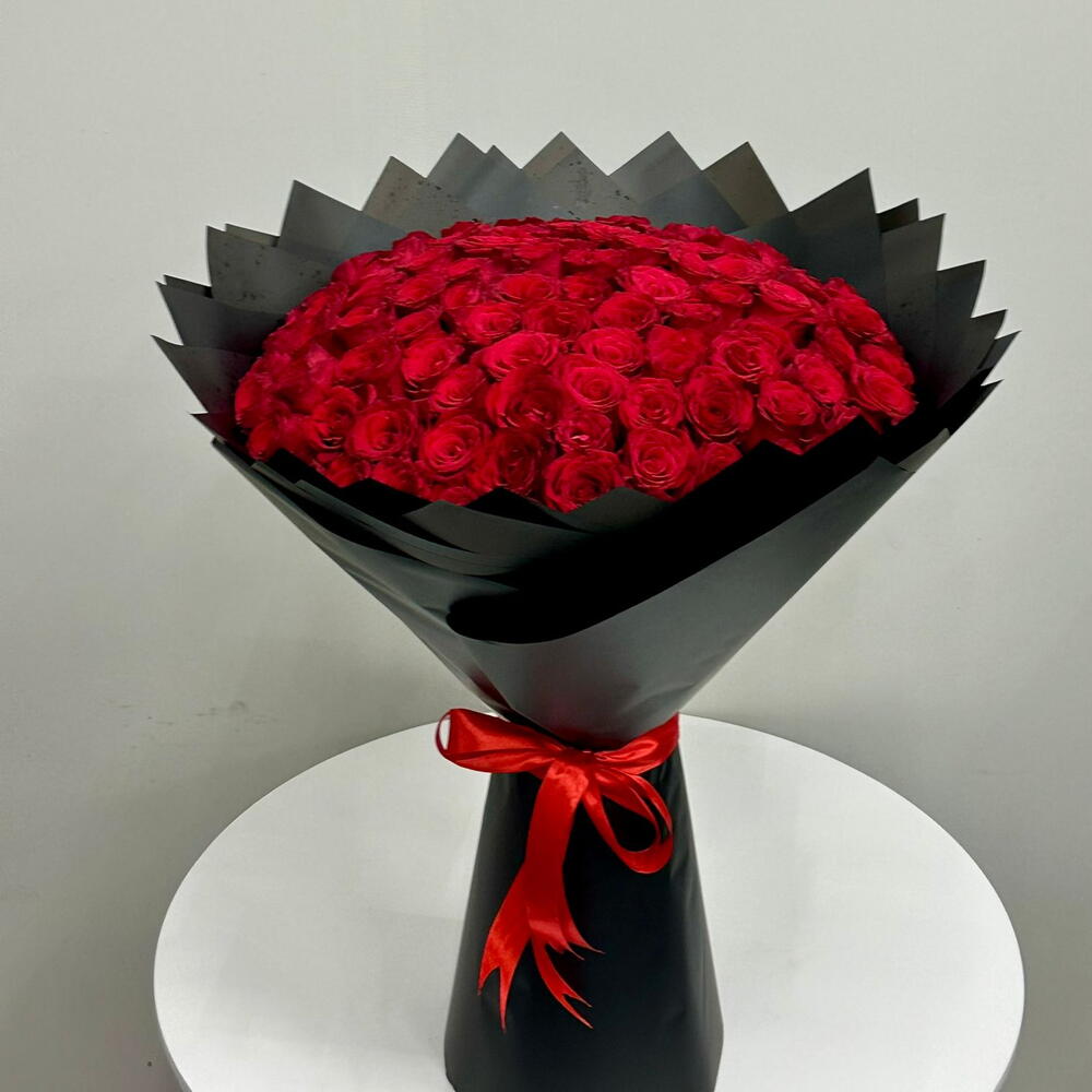 100 Red roses in black wrapping