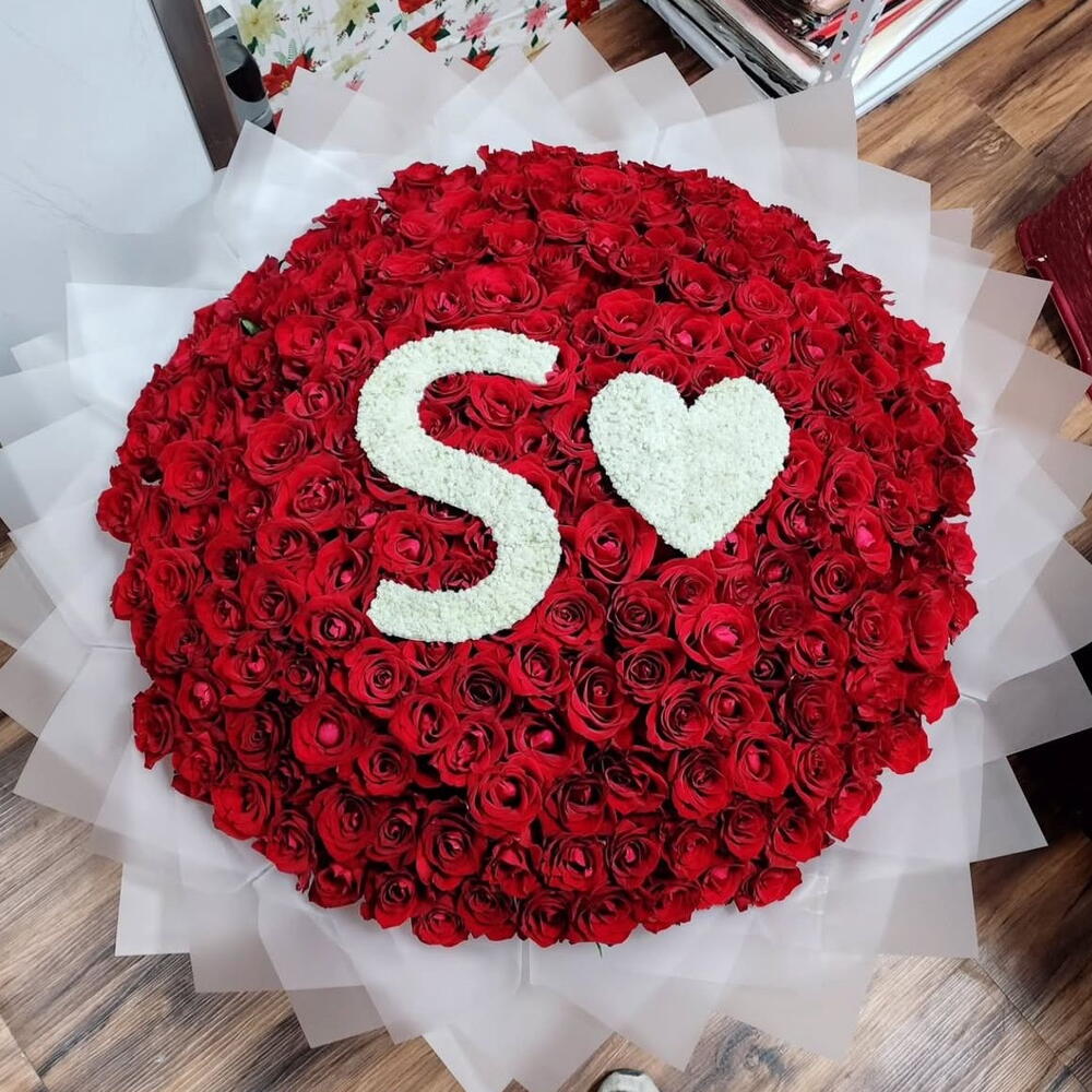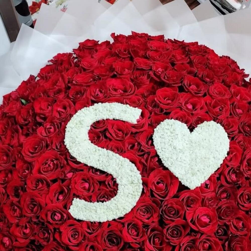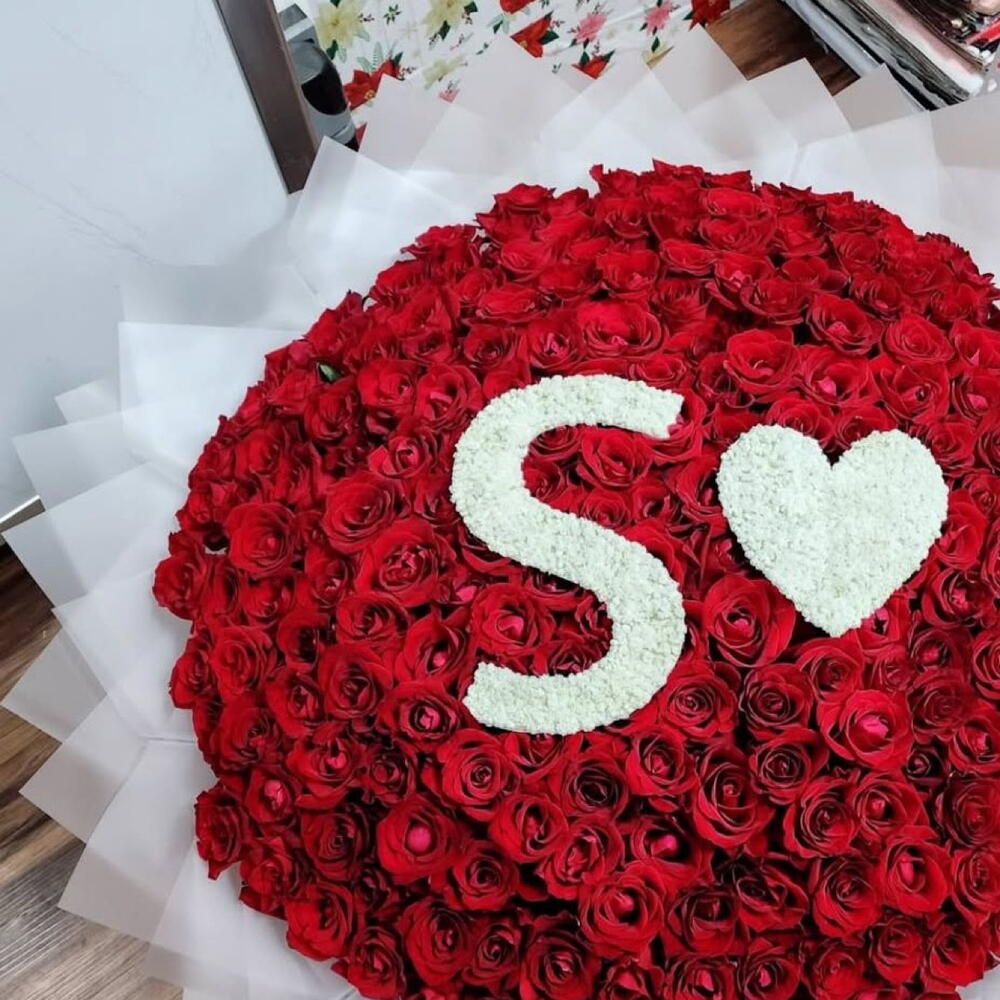 100 red roses with letter