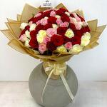 101 Lovely Rose Bouquet – Luxurious Mixed Roses in Red, Pink White | 40x40 cm