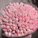 The 101 Natural Fragrant Pink Peony Roses bouquet is a breathtaking arrangement of 101 premium pink peony roses, each exuding a delicate fragrance. This lush, romantic bouquet is wrapped in soft, elegant paper and finished with a Fellora ribbon, making it the perfect gift for expressing love and admiration on any special occasion.