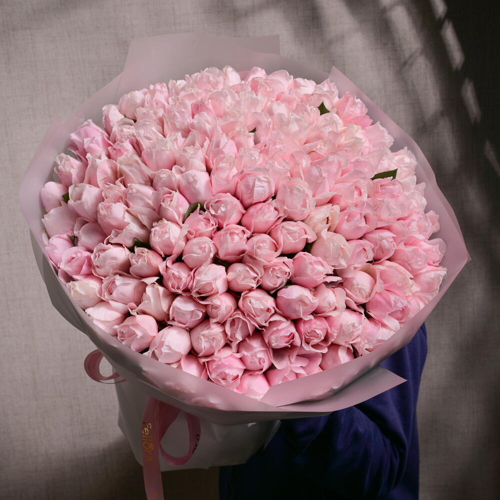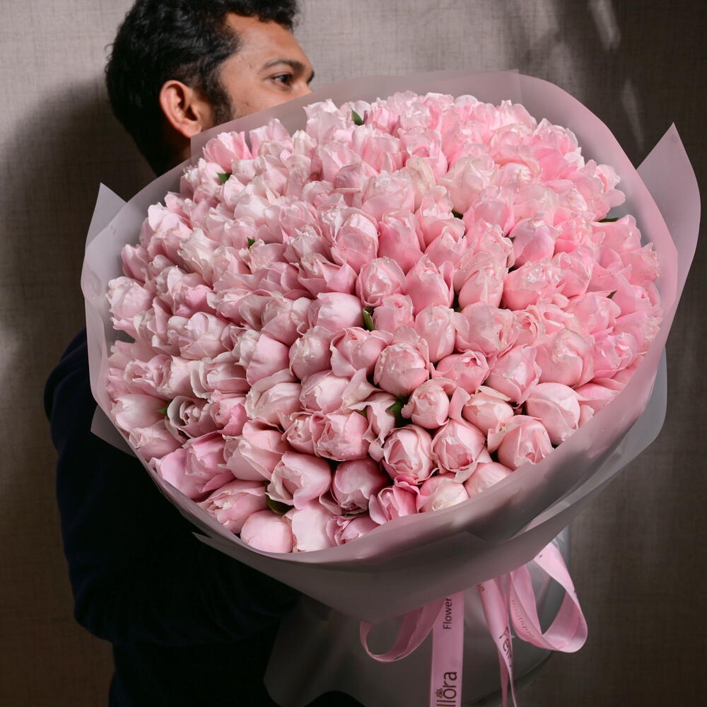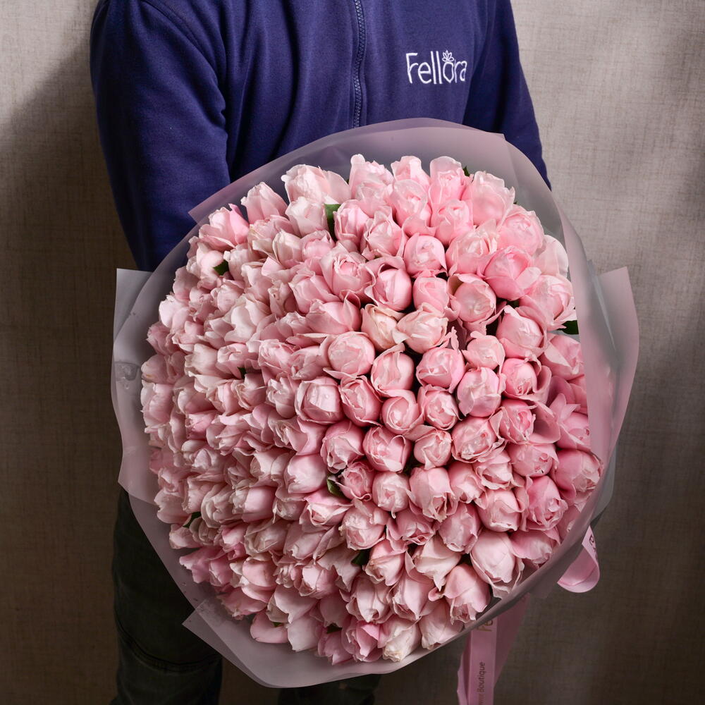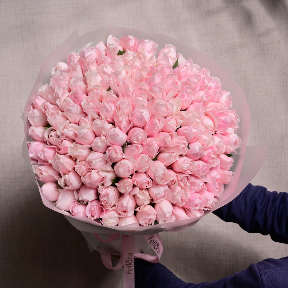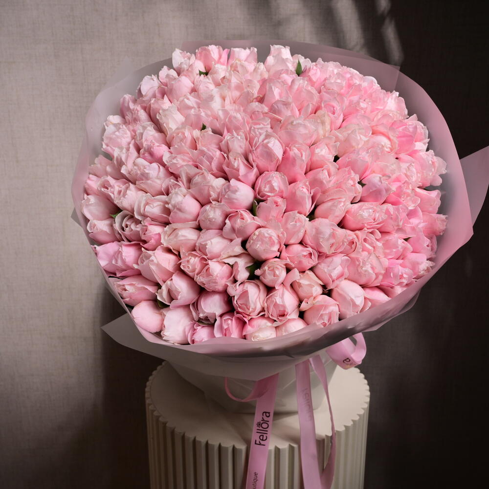 The 101 Natural Fragrant Pink Peony Roses bouquet is a breathtaking arrangement of 101 premium pink peony roses, each exuding a delicate fragrance. This lush, romantic bouquet is wrapped in soft, elegant paper and finished with a Fellora ribbon, making it the perfect gift for expressing love and admiration on any special occasion.