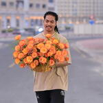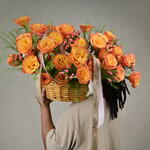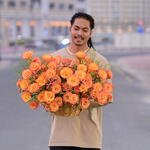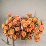 hypericum - 20 pcs orange rose - 101 pcs ribbon satin - 1 pcs wooden basket - 1 pcs lipidium - 10 pcs