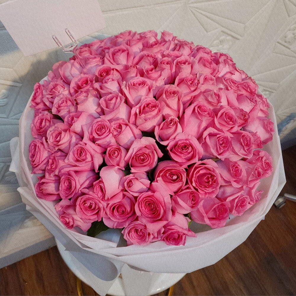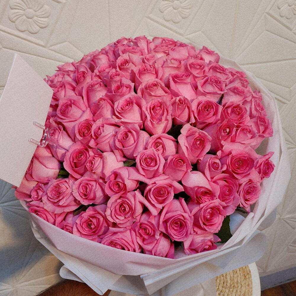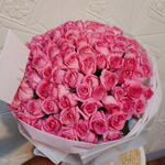 Surrender to the astonishing beauty of this mesmerizing mono bouquet. Featuring a breathtaking ensemble of 101 meticulously selected, radiant pink roses, this bouquet is designed to express eternal love and deep admiration. Each rose mirrors a passionate sentiment, making it a perfect statement of grace and elegance. This magnificent bouquet is certain to capture hearts and create unforgettable moments. Delighting the senses with its vibrant color and enticing aroma, this bouquet is more than a gift, its a magical experience. Suitable for every occasion or just to make an ordinary day special.