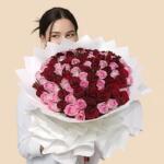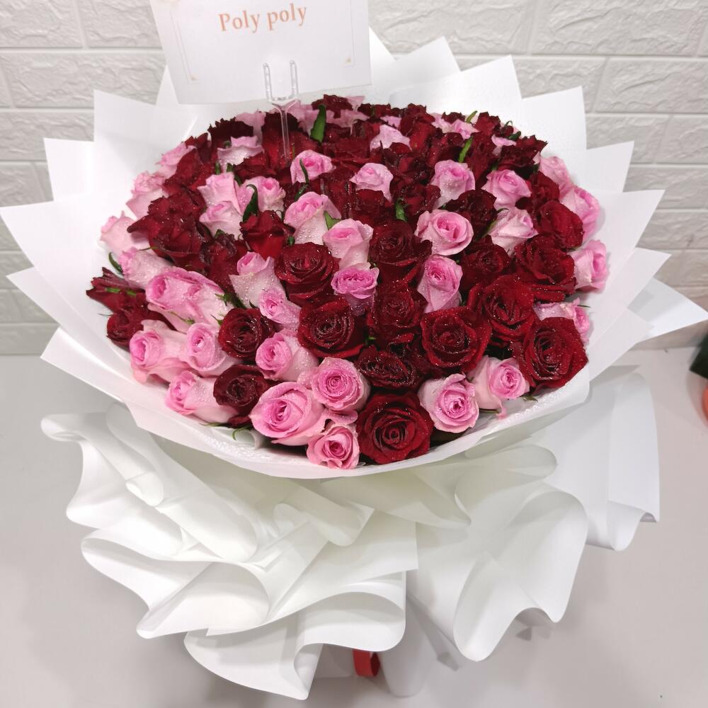 Wrapping - 8 pcs red roses - 51 pcs pink roses - 50 pcs