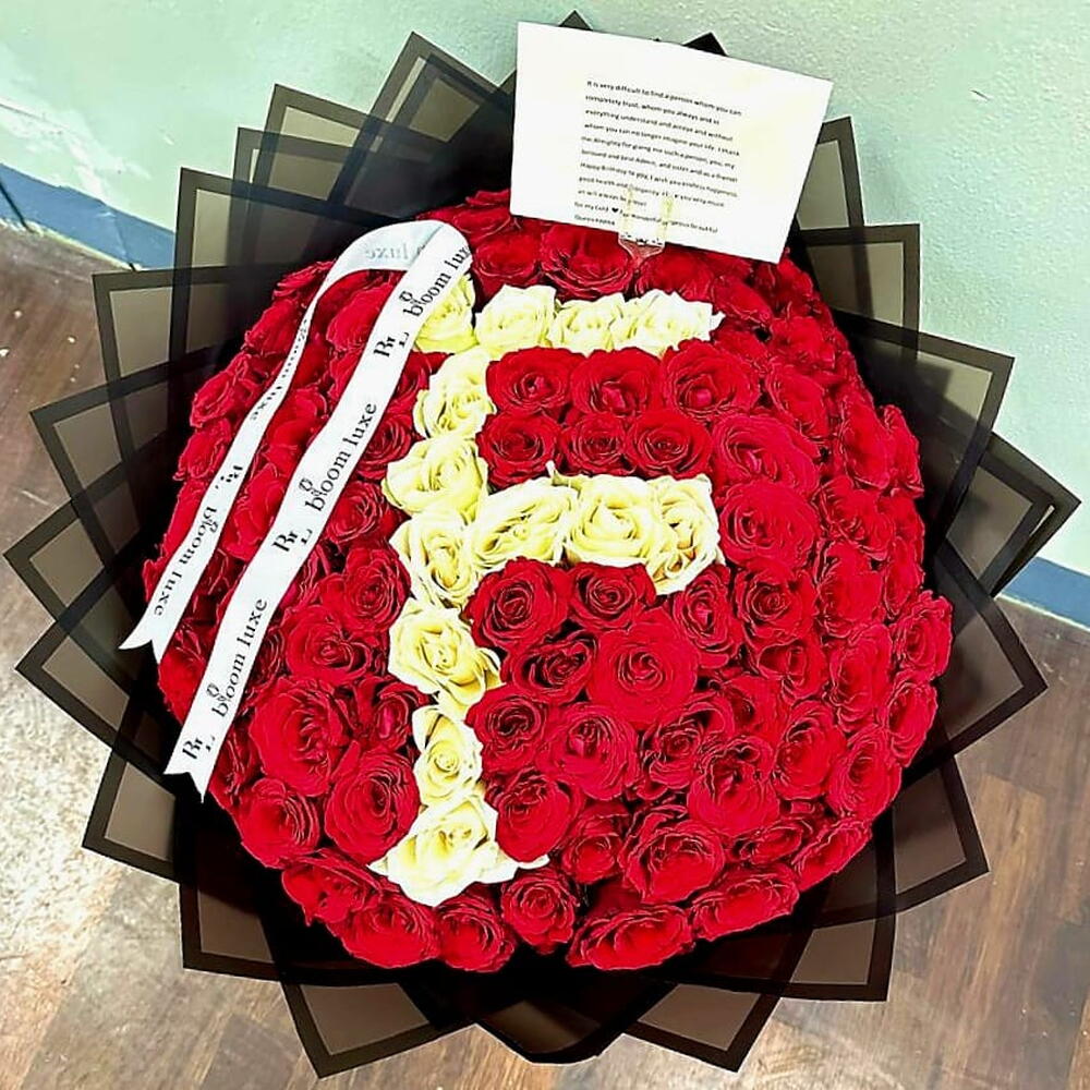 101 Red Roses Bouquet with nama latter