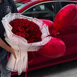 red roses - 101 pcs heart foil balloon - 3 pcs