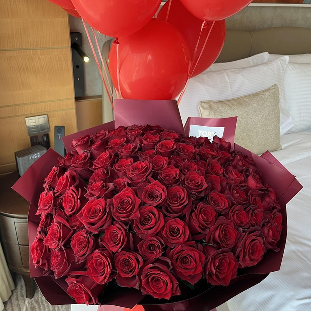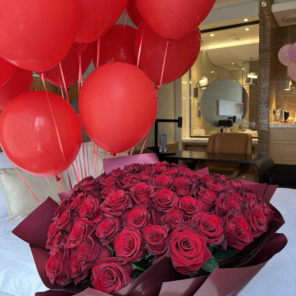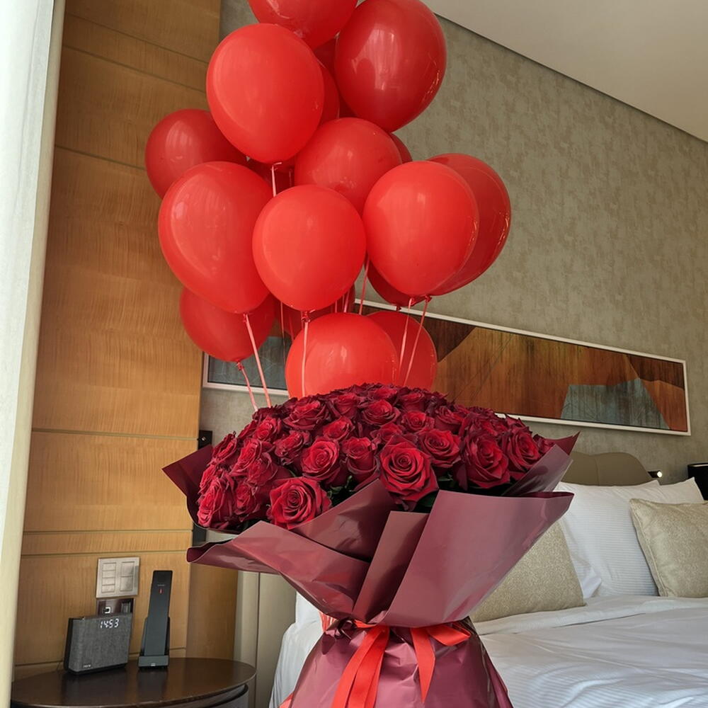 101 red roses "Sky in Flowers"+balloons