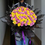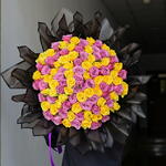 Ribbon - 1 pcs wrapping paper - 21 pcs purple roses - 51 pcs yellow roses - 50 pcs