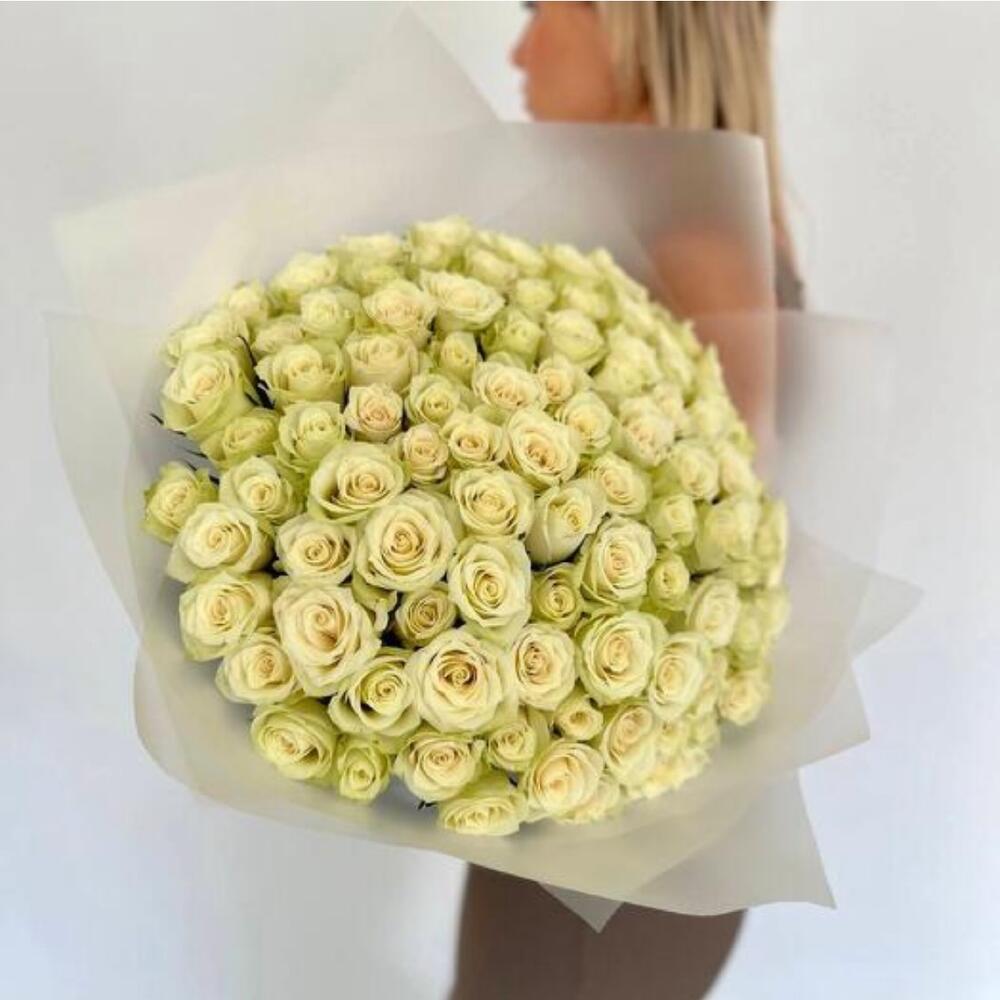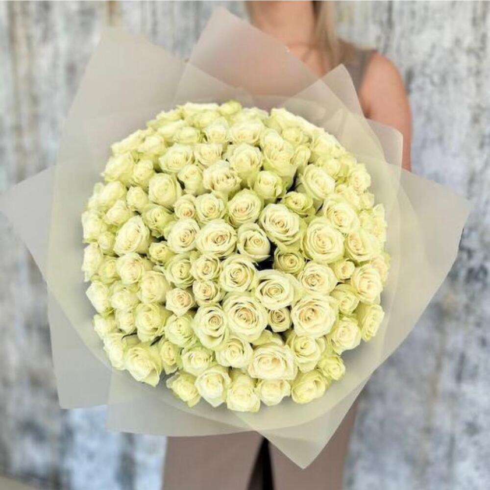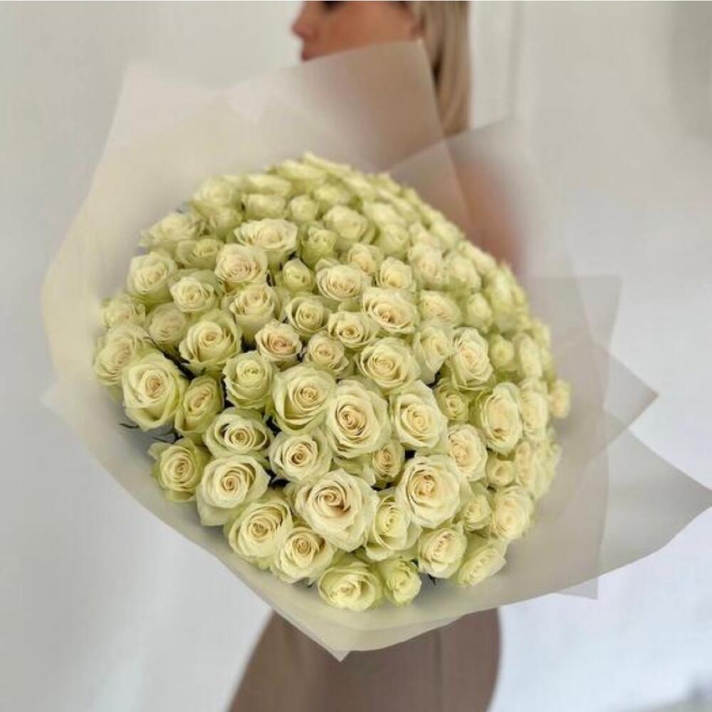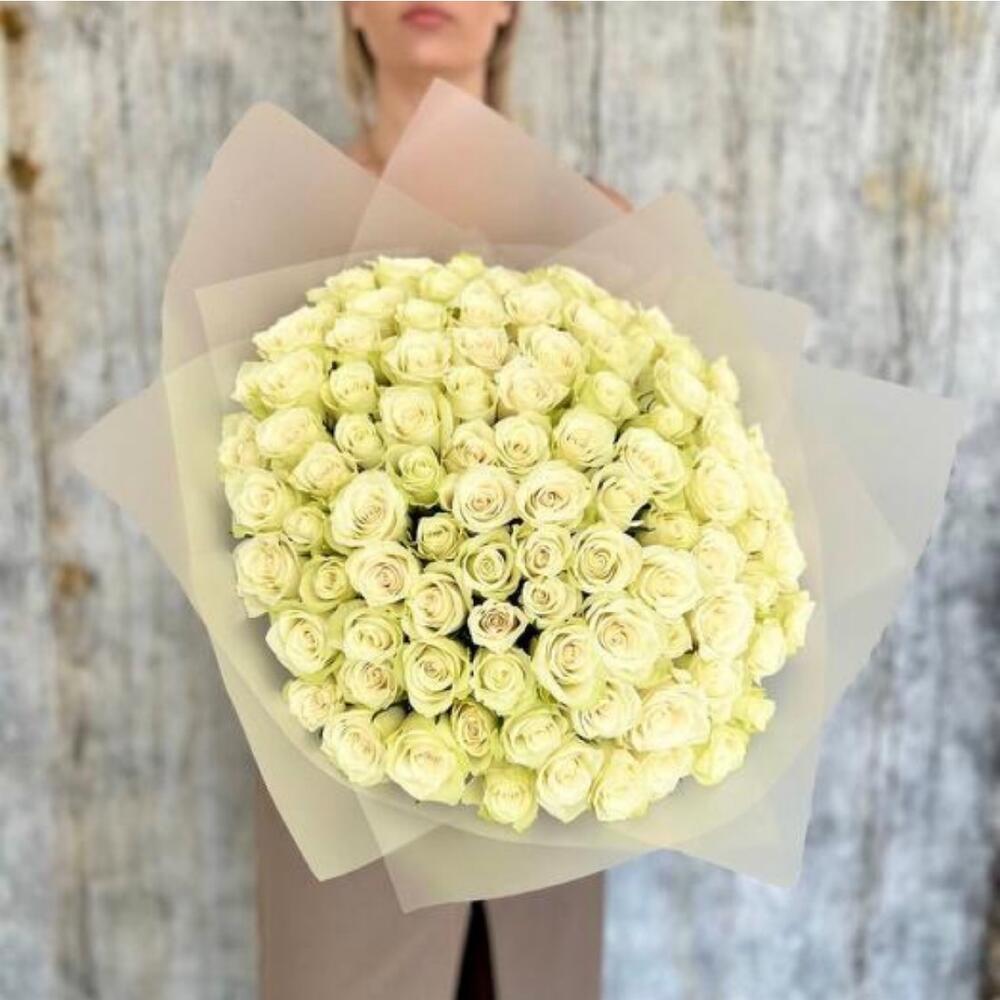 Ribbon - 1 pcs wrapping paper - 4 pcs white athena rose 50 cm - 101 pcs
