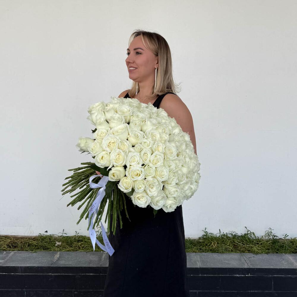 When white roses are favorite flowers of your soulmate, bouquet of 101 white roses is the best gift for Valentine's Day