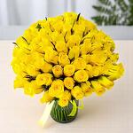 Ribbon - 1 pcs Yellow rose - 101 pcs glass cylinder - 1 pcs