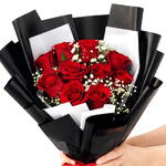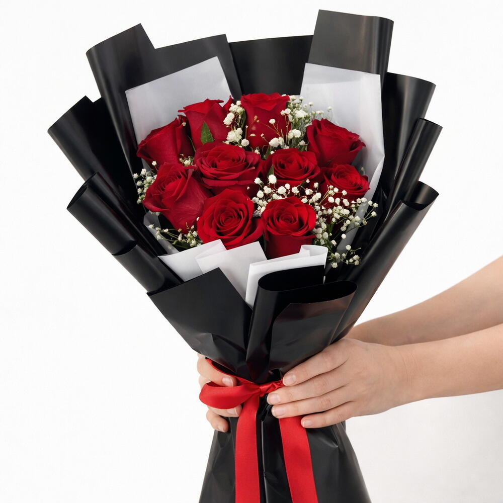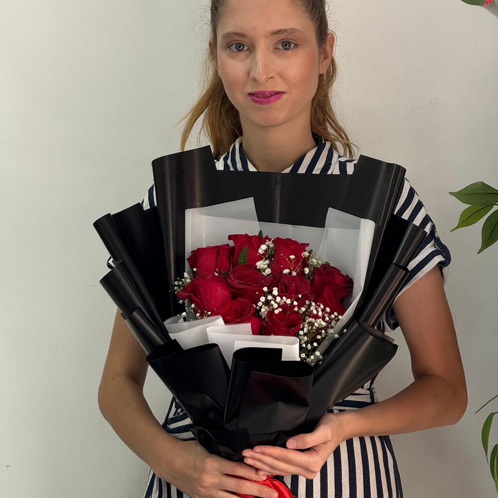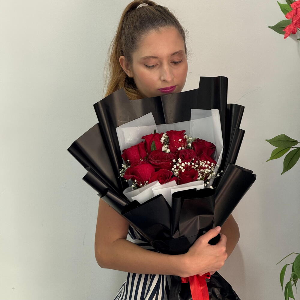 A timeless bouquet of 11 fresh red roses, elegantly wrapped in classic black for a bold and modern look. Perfect for romantic gestures, everyday surprises, or heartfelt gifting, this bouquet delivers strong emotion at an unbeatable price. Freshly arranged and ready for same-day delivery.