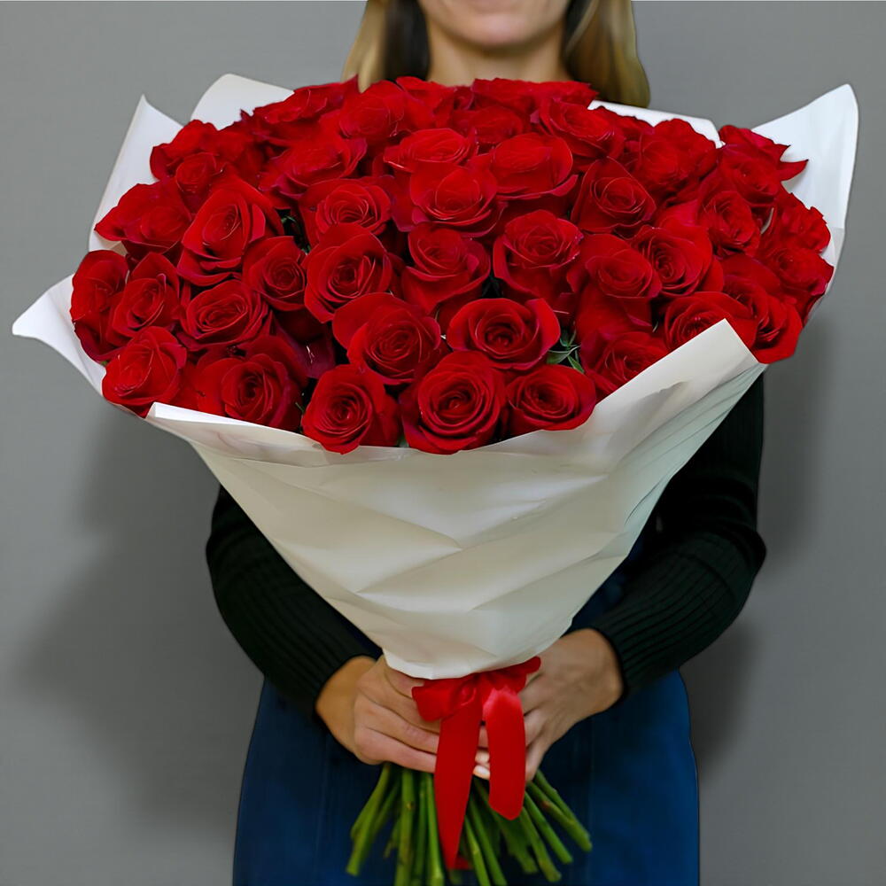 Red ribbon - 1 pcs white wrapping - 1 pcs red roses - 111 pcs