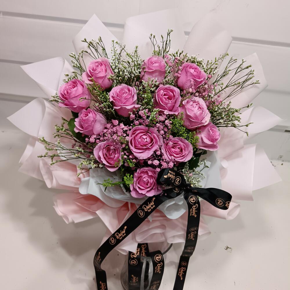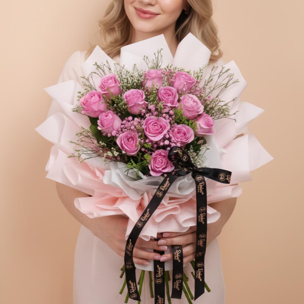 Pink rose - 13 pcs Wrapping - 10 pcs lemonium - 4 pcs