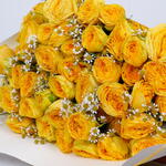Ribbon - 1 pcs tanacetum - 6 pcs wrapping paper - 3 pcs yellow peony rose - 15 pcs