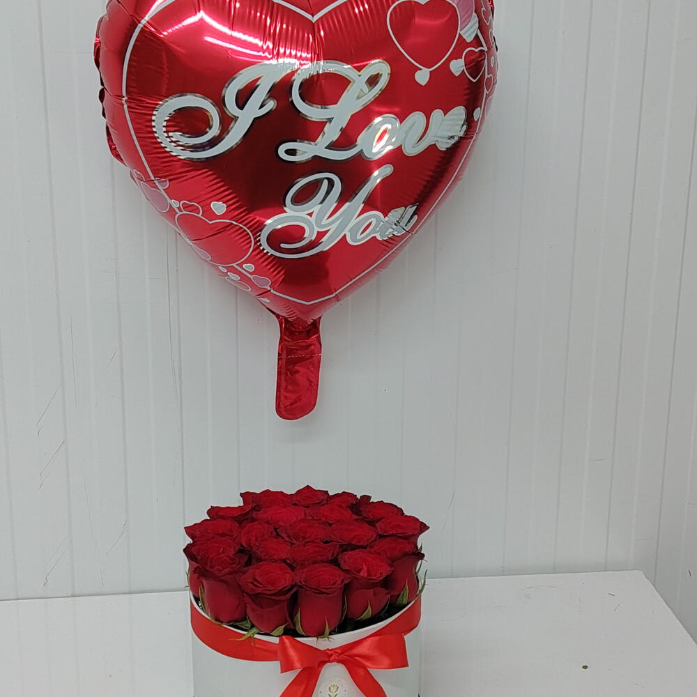 Red rose - 15 pcs Box - 1 pcs foil balloon - 1 pcs