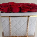 This exquisite monobucket of 15 lush red roses will come to you in a white bag of luxurious design. The perfect choice to express your love or just to please a loved one. You spread happiness with one beautiful gesture!