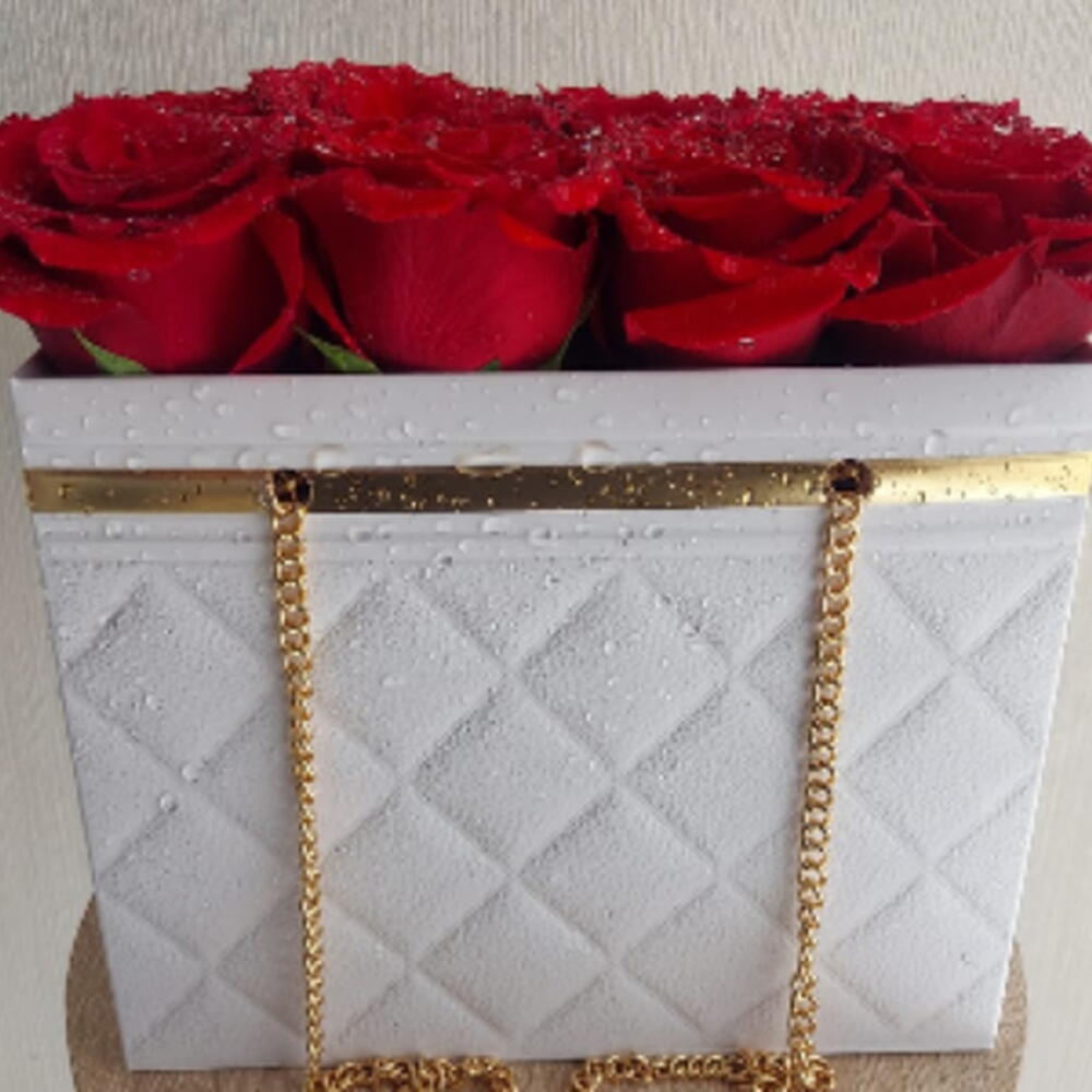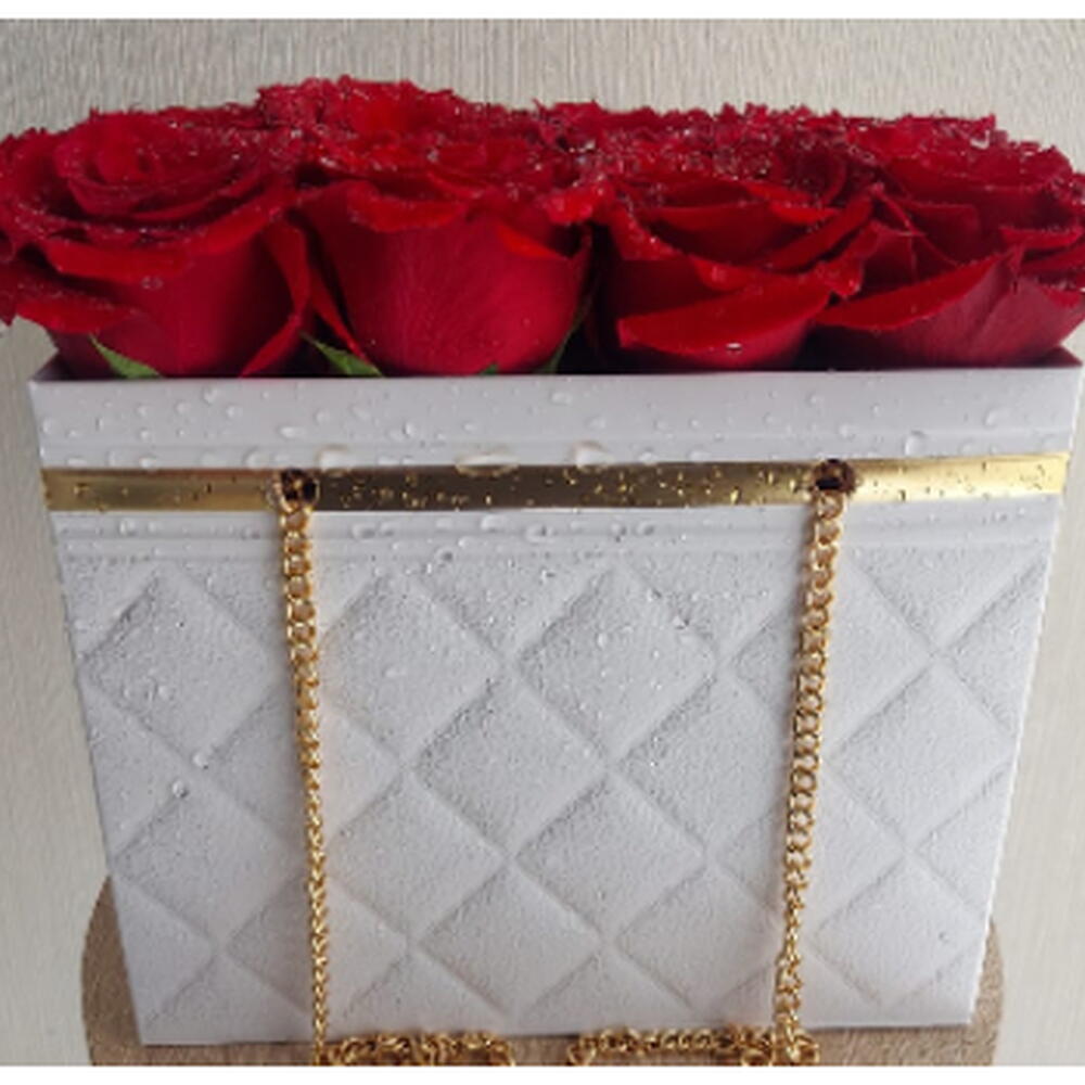 This exquisite monobucket of 15 lush red roses will come to you in a white bag of luxurious design. The perfect choice to express your love or just to please a loved one. You spread happiness with one beautiful gesture!