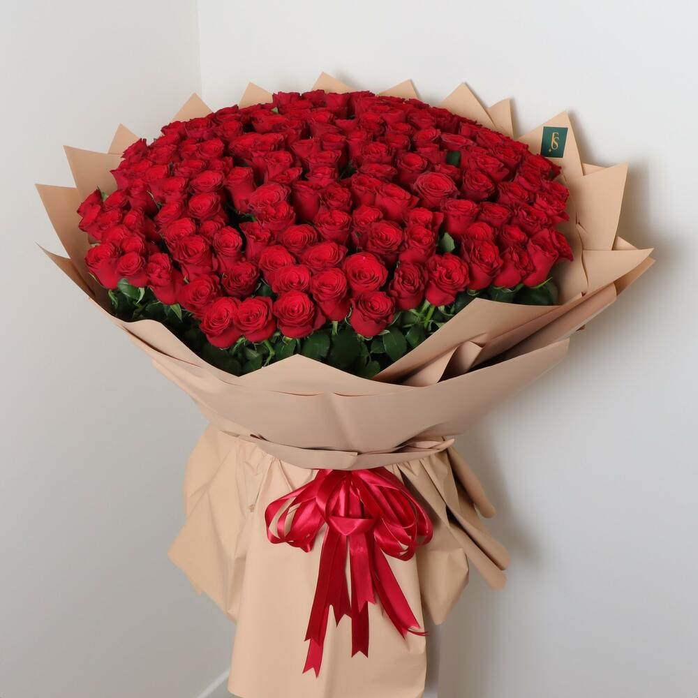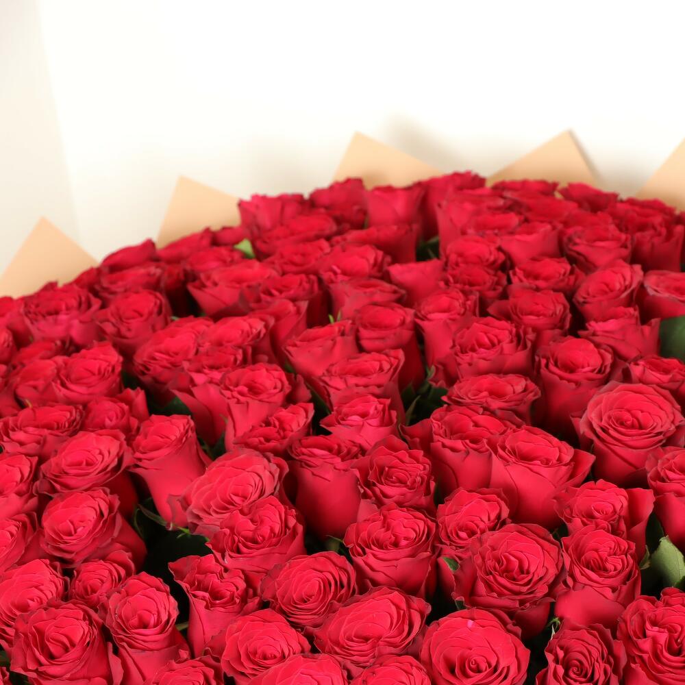 Treat yourself or a special someone to 150 luxurious red roses a stunning bouquet of beauty and love. Ready to impress and make your loved one smile, this romantic bouquet of red roses will fill the air with its natural fragrance. Make your grand gestures memorable with this exquisite bouquet today.