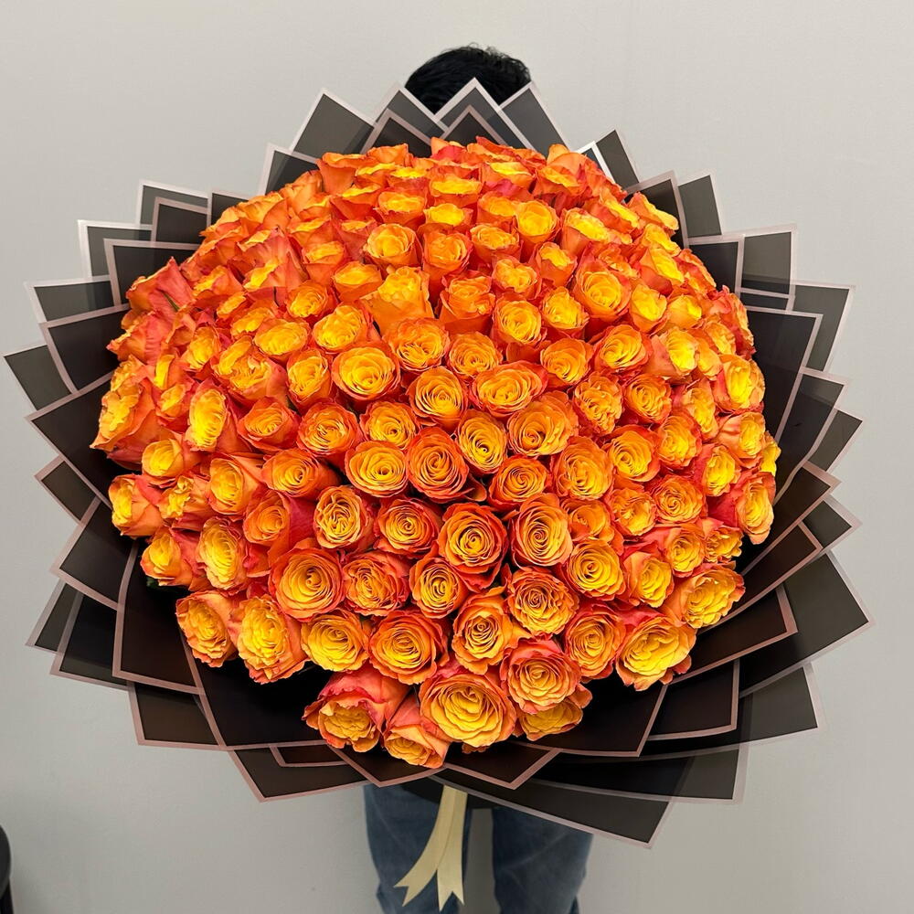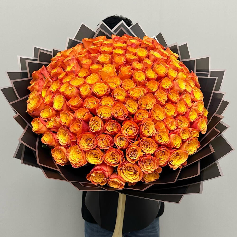 151 Orange Roses: A Fiery Display of Love This breathtaking bouquet features 151 vibrant orange roses, arranged in a stunning display that is sure to impress. Each rose is a symbol of passion, excitement, and enthusiasm, making this the perfect gift for someone special. Product Description 151 orange flowers roses Premium flowers bouquet Height bouquet 60 cm 100% FRESHNESS GUARANTEE 100% high quality product 100% hand tied bouquet Flower care guide 1. Remove flowers from packing 2. Fill a clean vase two thirds full with fresh water 3. Cut 2 cm off each stems at an angle 4. Remove any leaves that have fallen below the water waterline 5. Change water every 2 days This flowers are best gift for this occasion Valentine flowers Birthday flowers Wedding flowers Anniversary flowers Date nights flowers Apologies flowers Mother’s day flowers