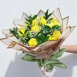 Ruscus - 10 pcs Yellow rose - 15 pcs gypsophila white - 5 pcs