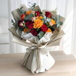 A vibrant bouquet featuring 6 yellow roses, 6 red roses, 1 orange rose, and 3 pink lisianthus, beautifully arranged to convey love, joy, and elegance. Perfect for birthdays, celebrations, or special occasions.