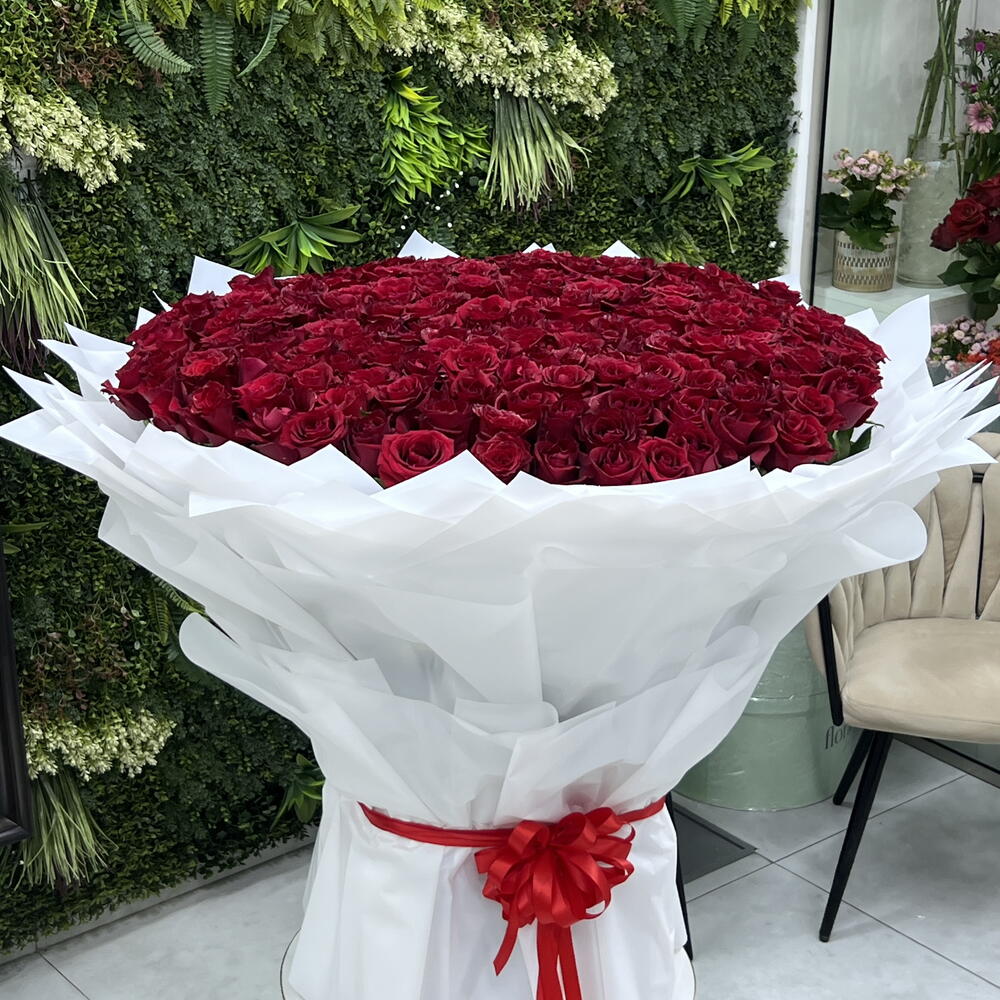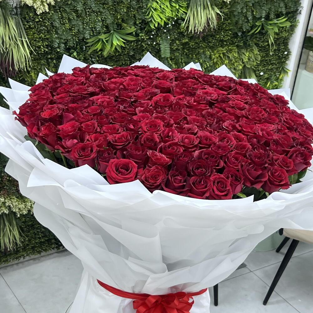 Experience pure romance with our 201 Fresh Red Roses Bouquet, crafted from long-stem 70cm premium red roses. Each stem is hand-selected for its rich color, full bloom, and velvety texture—creating a breathtaking, oversized arrangement that speaks luxury at first sight. Expertly wrapped for a dramatic finish, this bouquet is perfect for grand gestures: anniversaries, proposals, celebrations, or moments when only the best will do. A statement of love, elegance, and unforgettable impact. If you want, I can also add your shop details, hashtags, or tweak the tone.