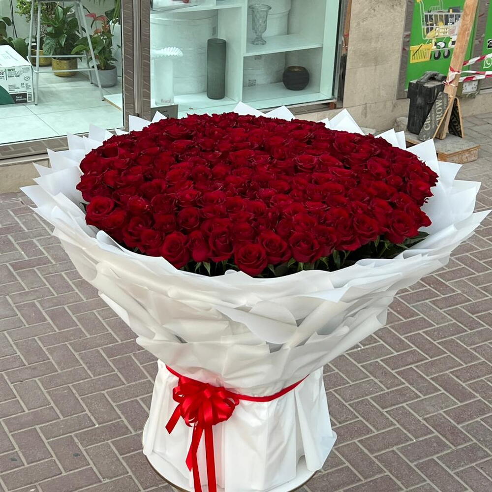 Make an unforgettable statement with this huge bouquet of 201 premium red roses, beautifully wrapped in elegant white paper. Each rose is hand-selected for its rich color, full bloom, and long-lasting freshness, creating a breathtaking symbol of deep love and passion. The striking contrast between the vibrant red roses and the clean white wrapping adds a timeless, sophisticated touch—perfect for grand celebrations, proposals, anniversaries, or VIP occasions. This luxurious arrangement is designed to impress and express emotions beyond words. 🌹✨