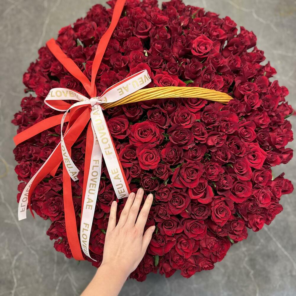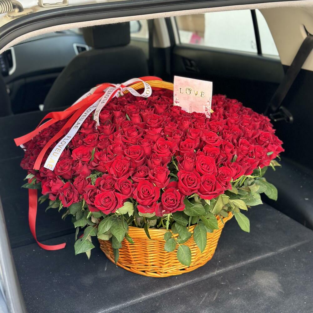 A stunning and luxurious display of 201 velvety red roses beautifully arranged in an elegant basket. Each rose is hand-selected for its rich color and flawless bloom, symbolizing deep love, passion, and devotion. Overflowing with romance, this grand arrangement makes an unforgettable statement perfect for anniversaries, proposals, or any moment that calls for a bold and heartfelt declaration. The basket adds a classic touch, making it easy to present and admire from every angle. A true showstopper, crafted to impress and express love without limits.
