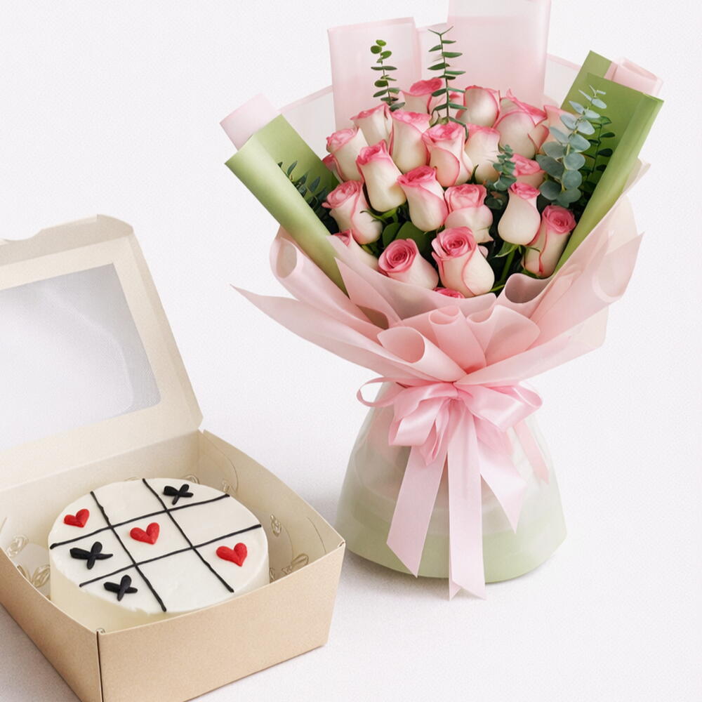 Immerse yourself in the enchanting intoxication of our Mono Bouquet that features 21 lush pink roses gracefully intertwined with 2 sprigs of refreshing eucalyptus leaves. It gets better - the bouquet comes with a meticulously crafted bento cake weighing 200g, amplifying the sweetness of your gesture. A visual and sensory delight all wrapped into one spellbinding arrangement. Make any day special with this enchanting array of pink blooms and a surprise treat. Experience the charm of giving or receiving this beautiful Mono Bouquet.